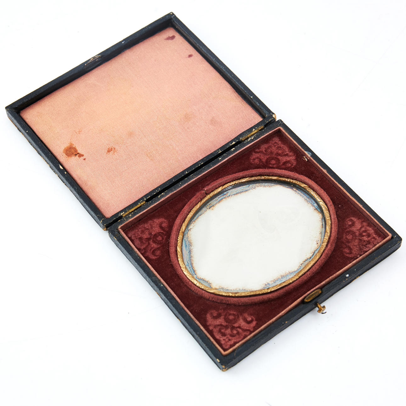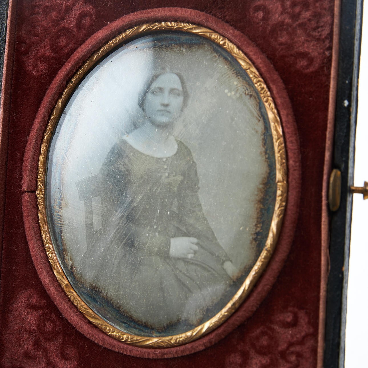 1850s/60s, female portrait, mounted in embossed case, case dimensions 9x10.5 cm.