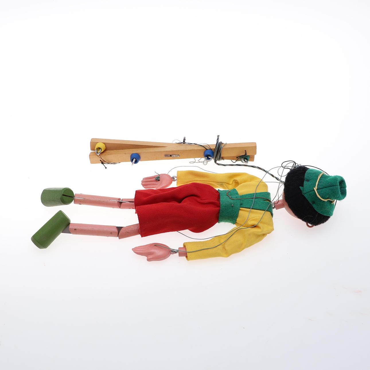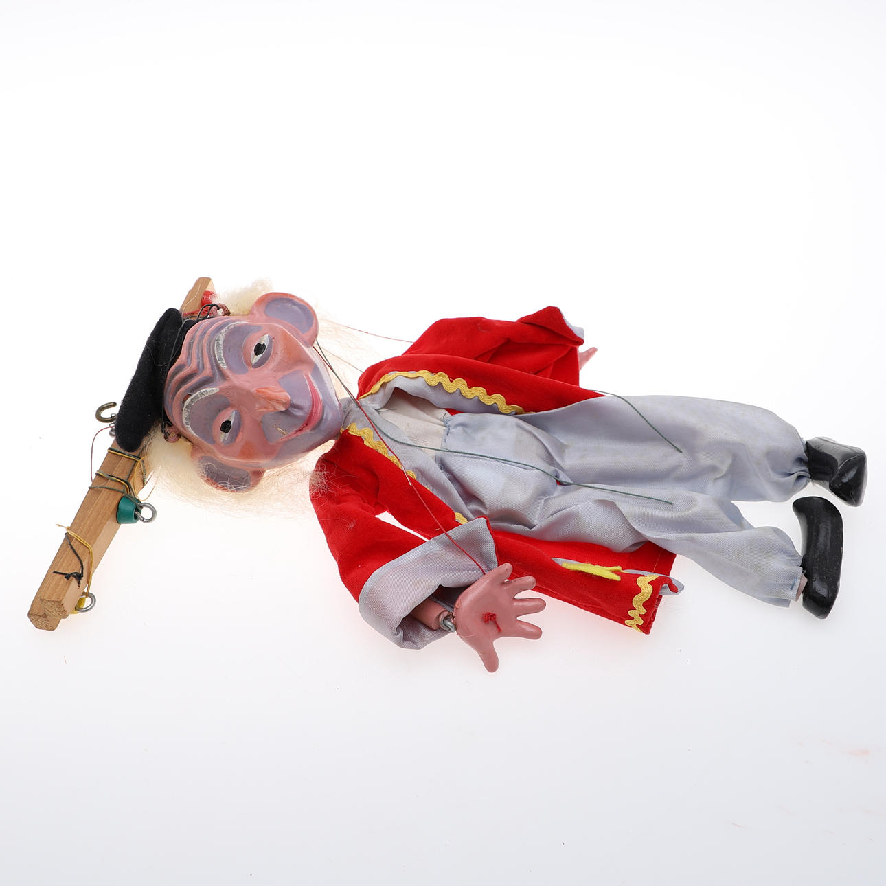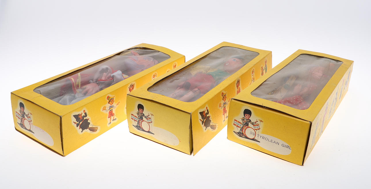 Boxes with creases, window damage etc, puppets with some paint loss.