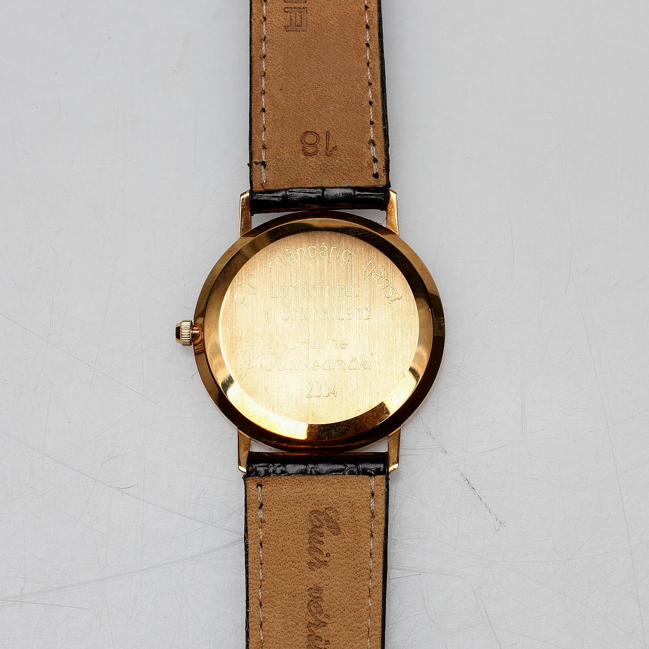 Engraving on the back of the estate. The diameter of the watch is about 3 cm. Black leather bracelet. Unused. CASE.