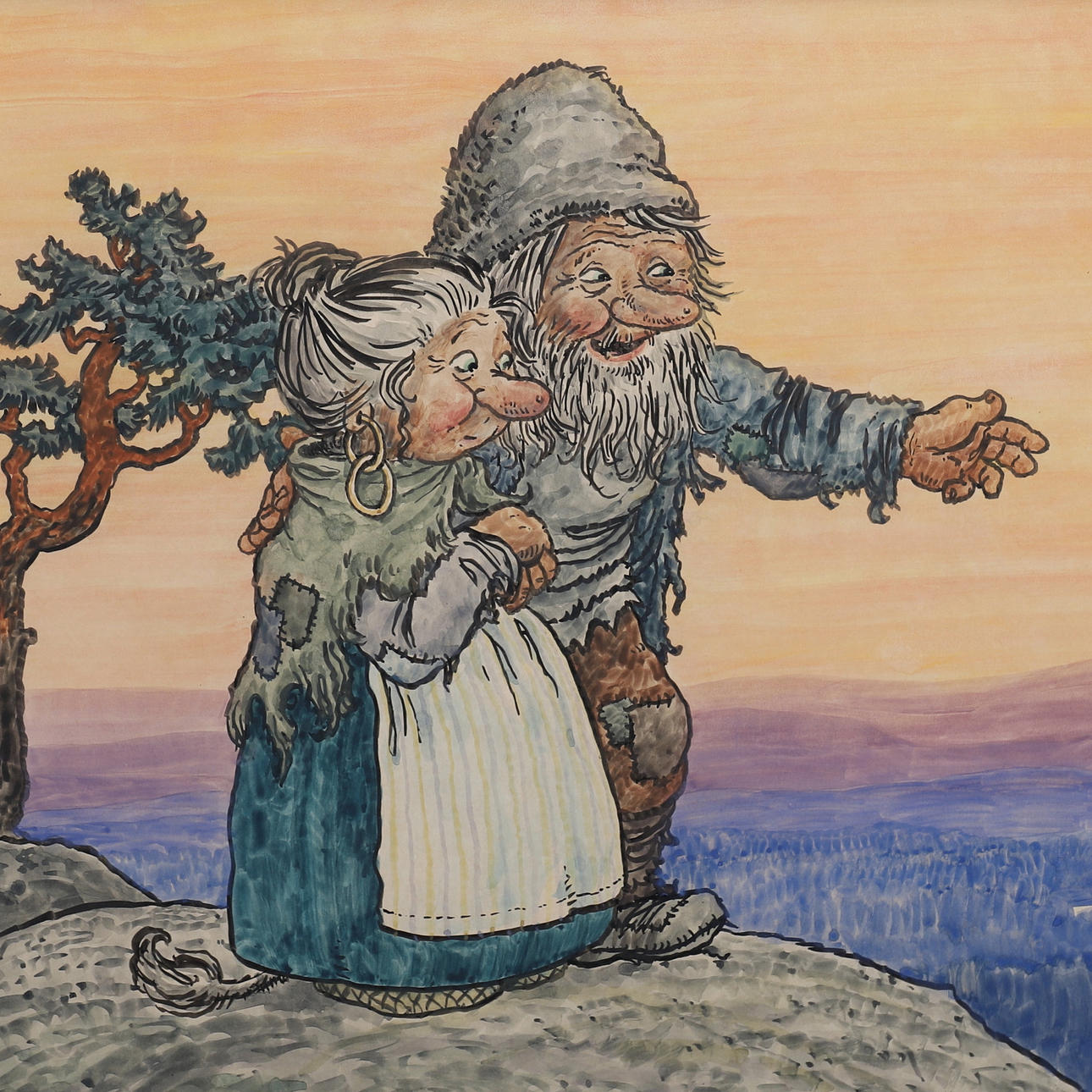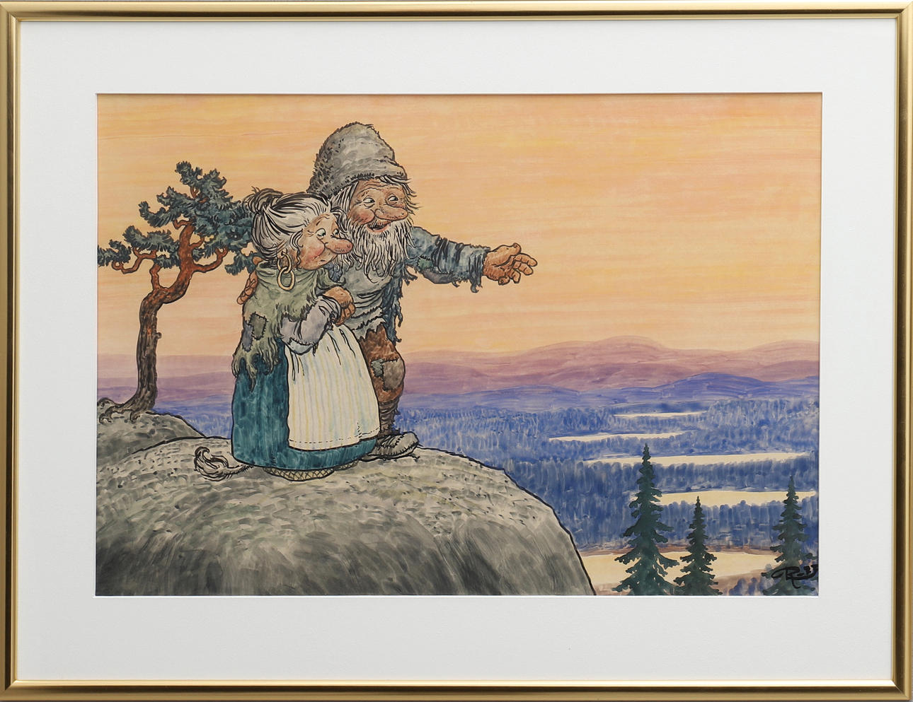 ROLF LIDBERG. MOUNTAIN LANDSCAPE WITH TWO TROLLS.