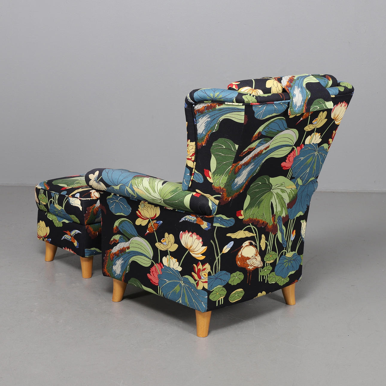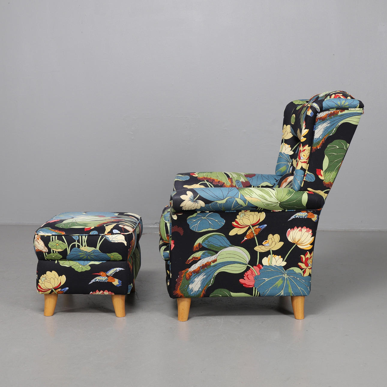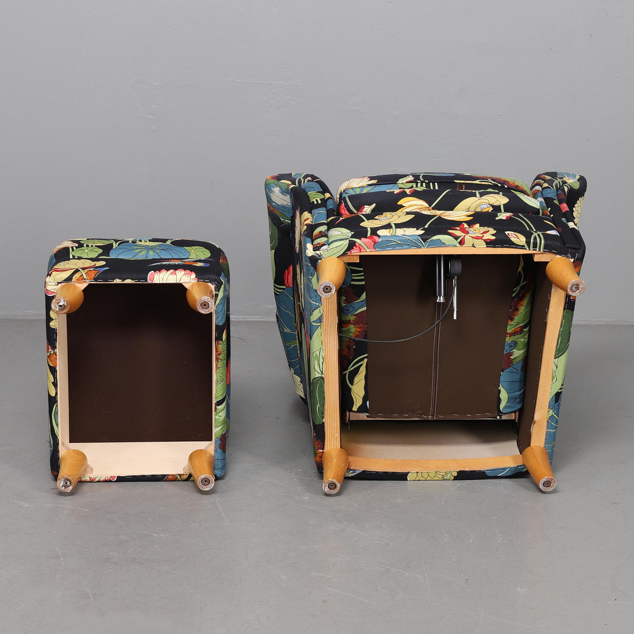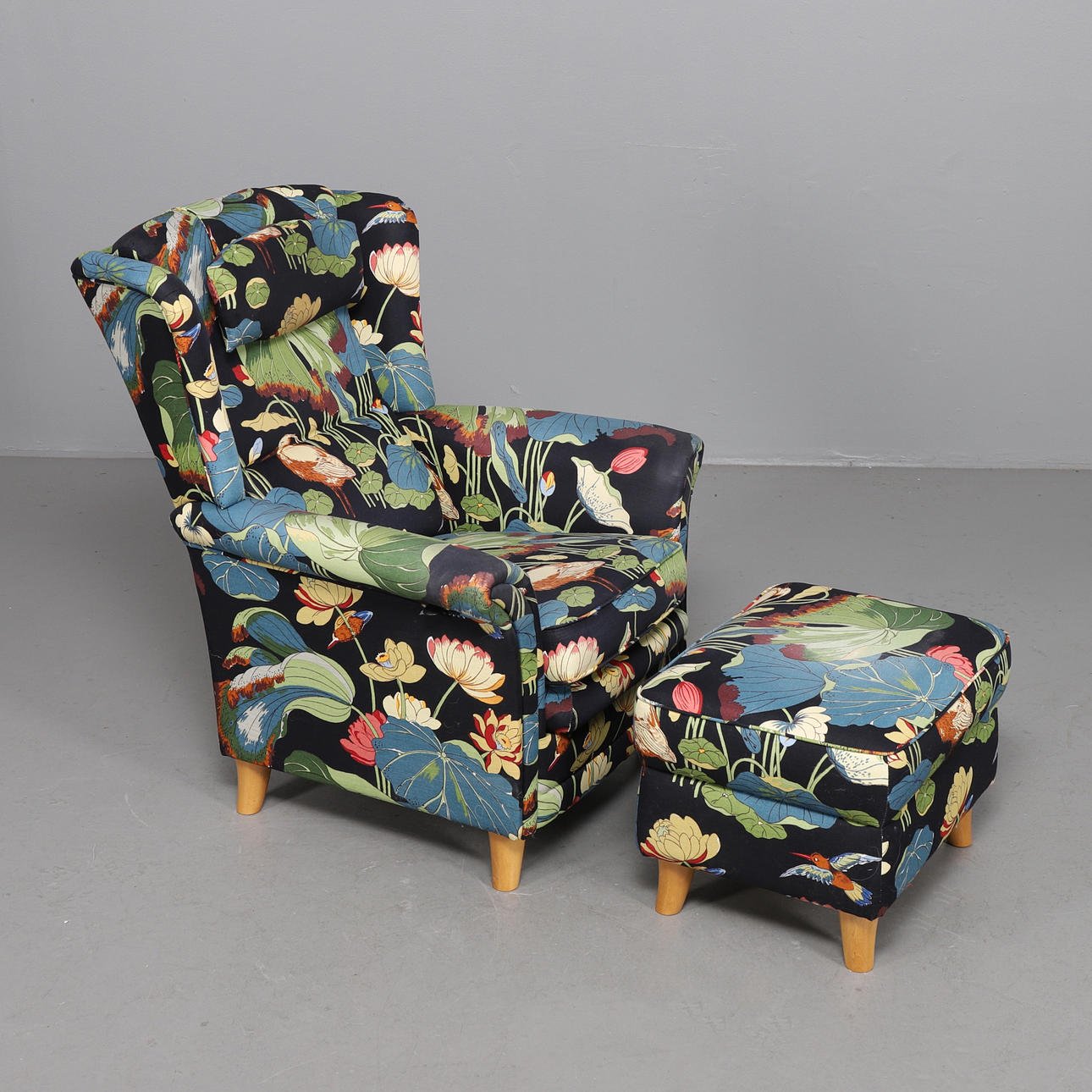 2430717. LOUNGE ARMCHAIR with Stool, newer production.