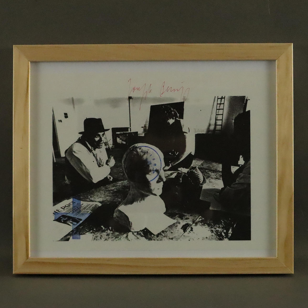 “Joseph Beuys” signed by hand at the top center, with main stream stamp and cross stamp, image size ca. 17 x 23 cm, framed under glass, total dimensions approx. 27 x 33 cm