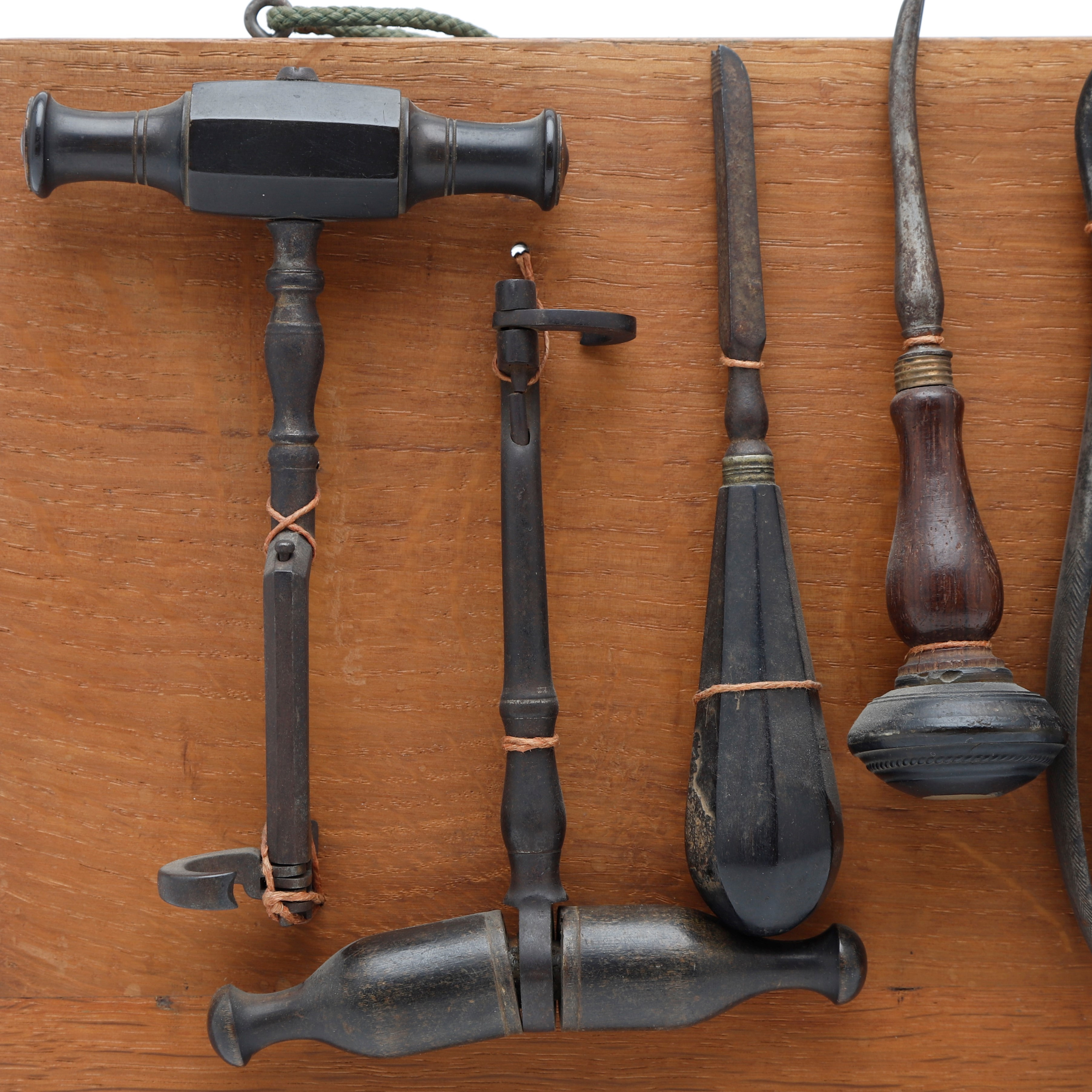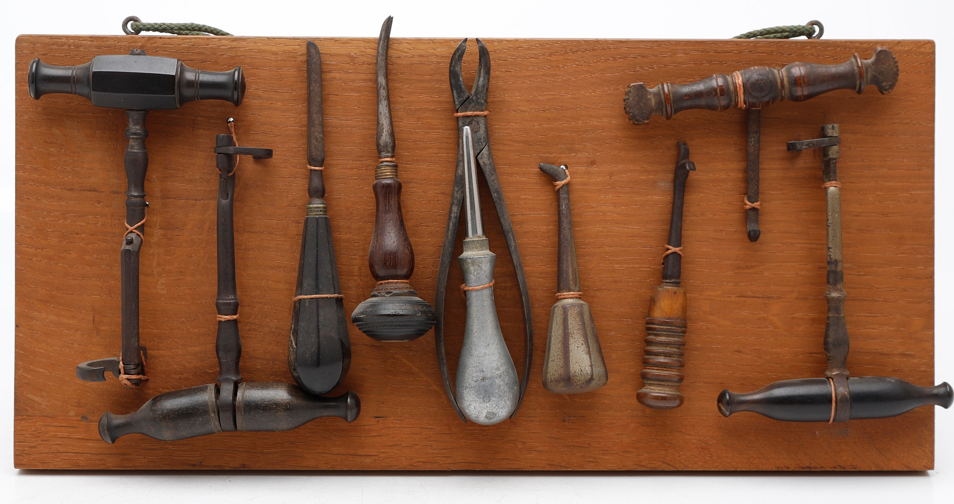 310. 2436031. Panel with ten dentist tools, 19th Century.
