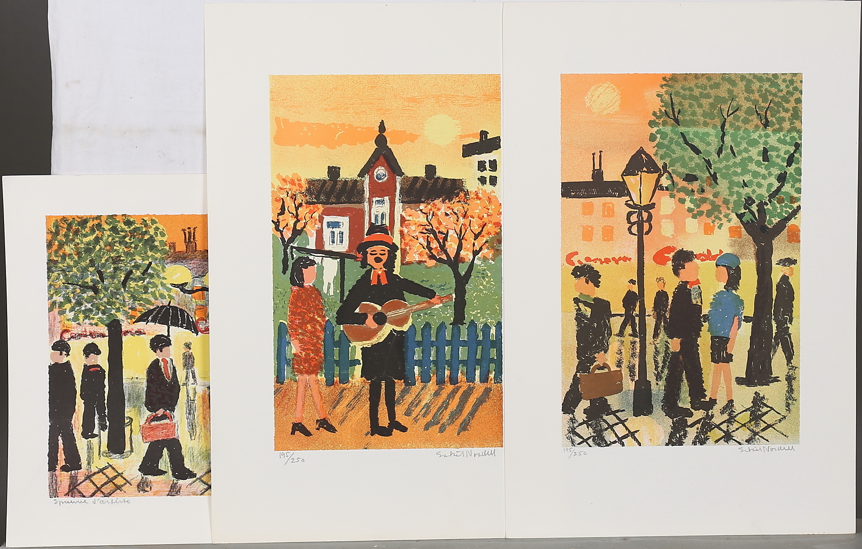 243920. ESKIL NORDELL. Color lithographs, 4 pcs, signed.