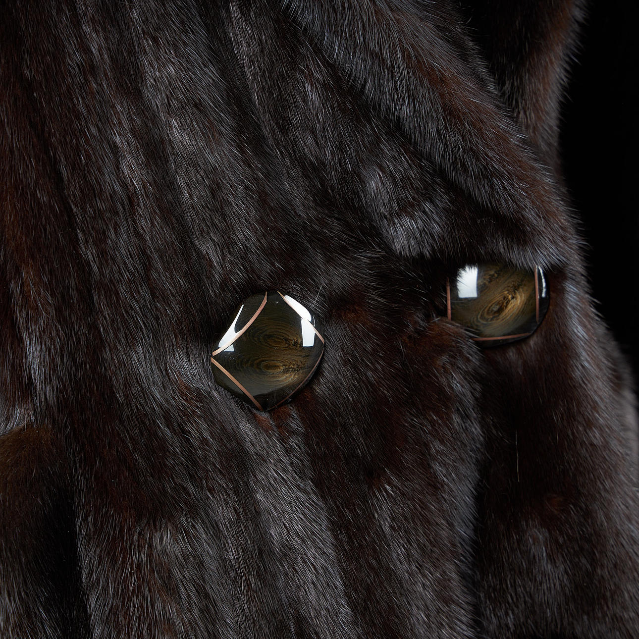 Four buttons, side pockets, back length 102 cm, shoulder width approx. 42 cm, sleeve length 40-52 cm, marked Forrures Wyssbrod Zürich, fur hat Saga mink.