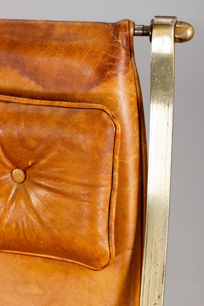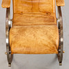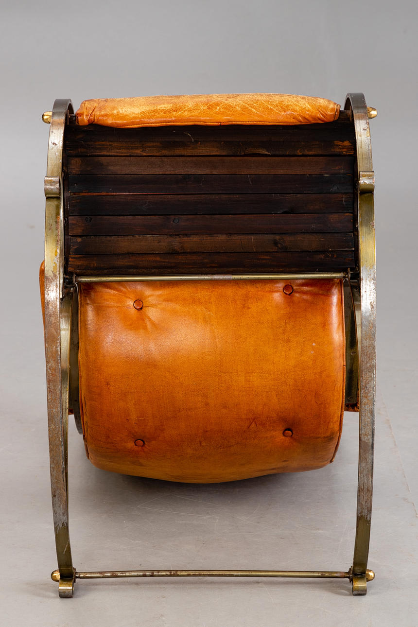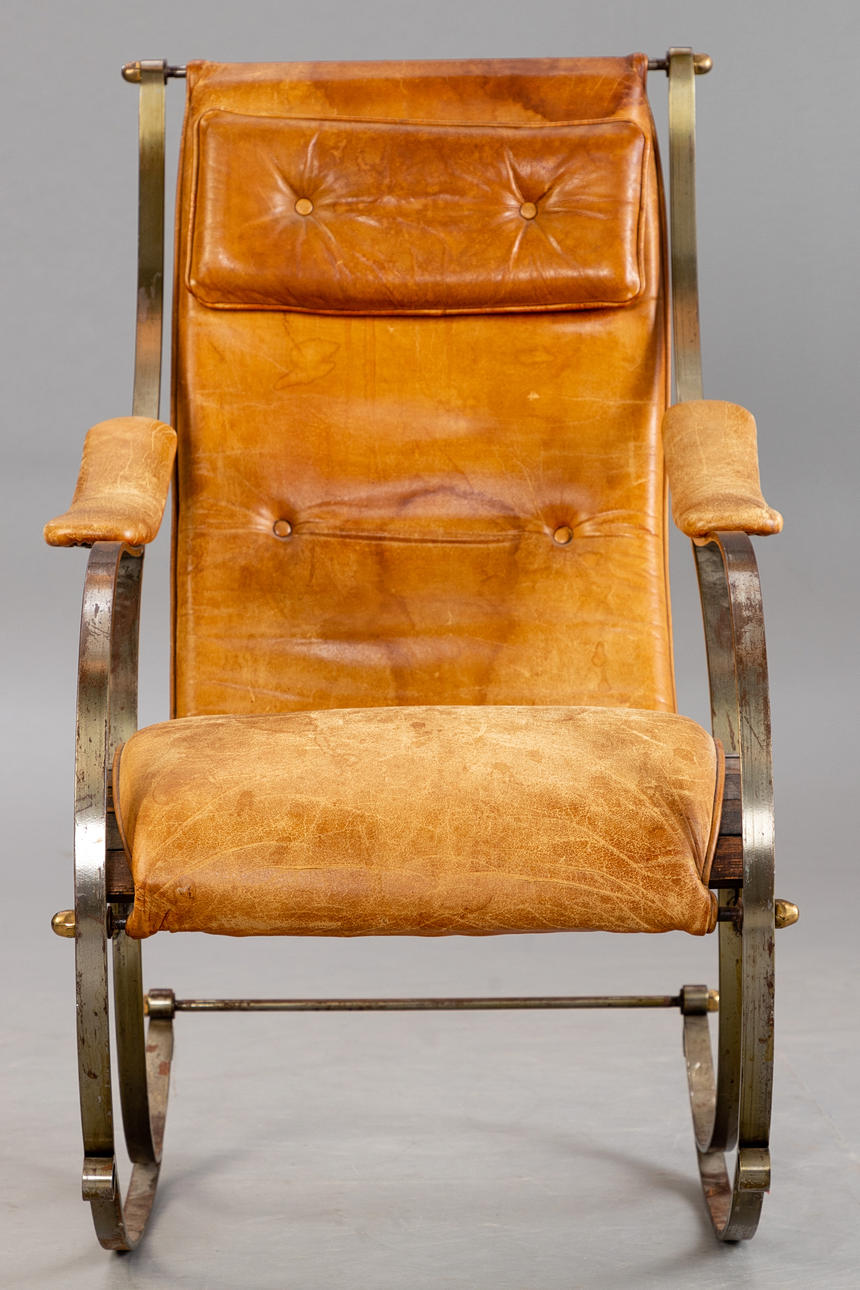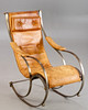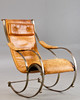 Rocking Chair by Peter Cooper for RW Winfield & Co. Birmingham, England. 1851 draft. Flat steel and wood construction, cognac-brown leather upholstery.
