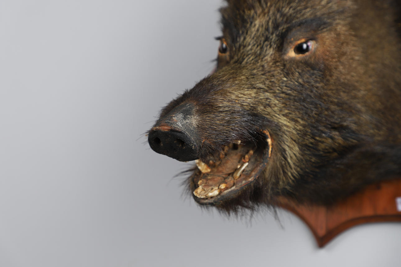 A MOUNTED BOARS HEAD.