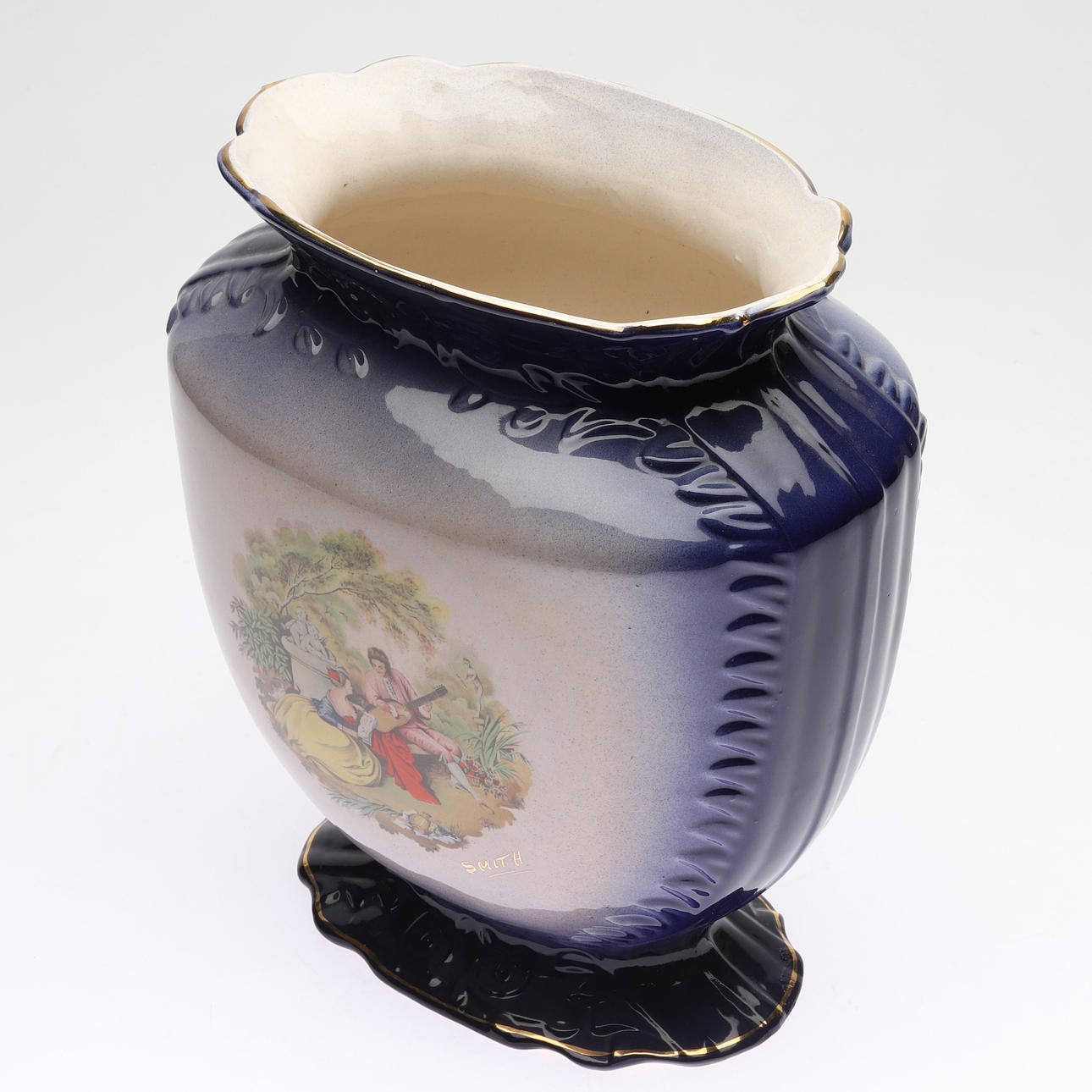 Decor of rococo couples. Marked "Smith".