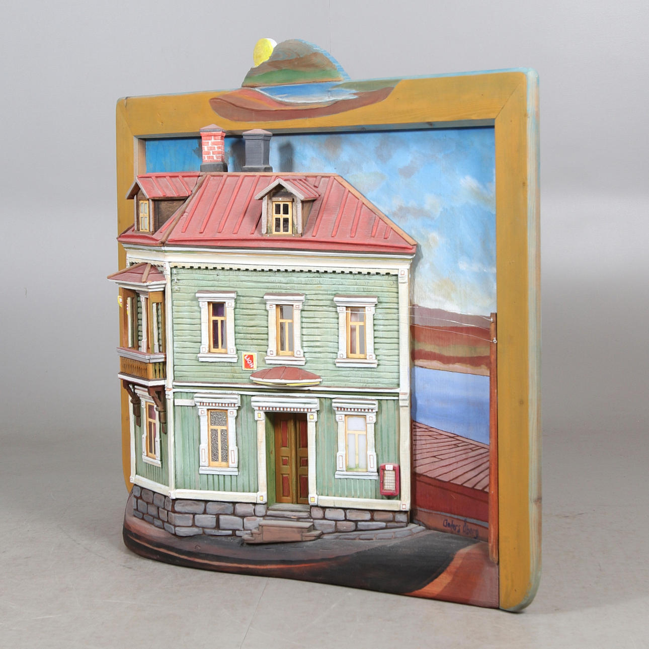 ANDERS ÅBERG. "City hotel", wall sculpture, signed.