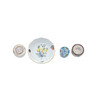With moulded sides, painted with flowers and fruit, 7cm diameter, a 925 mark box with elaborate etchings to the side and Arabic script centred to the top, 3.2cm diameter, a cloisonné enamel 925 mark box, of round form, 2.5cm diameter, and another round box, the cover inset with an Arabic coin (4).