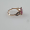 6cts Oval Cut Ruby Ring with Rose Cut diamonds in sterling silver, yellow gold plating, weight: 3.7 grams, ring size: 17 mm, stone: approx. 1 cm.