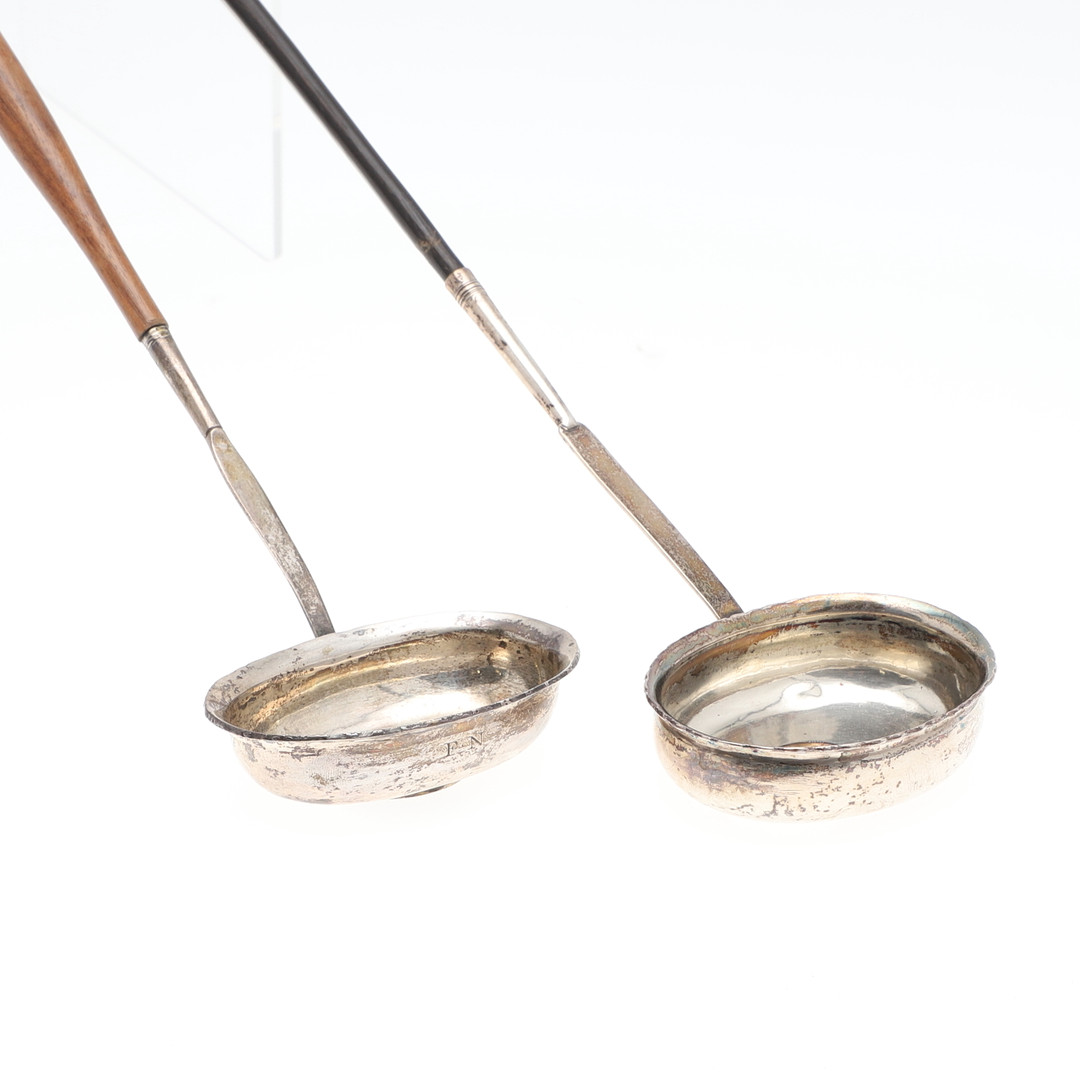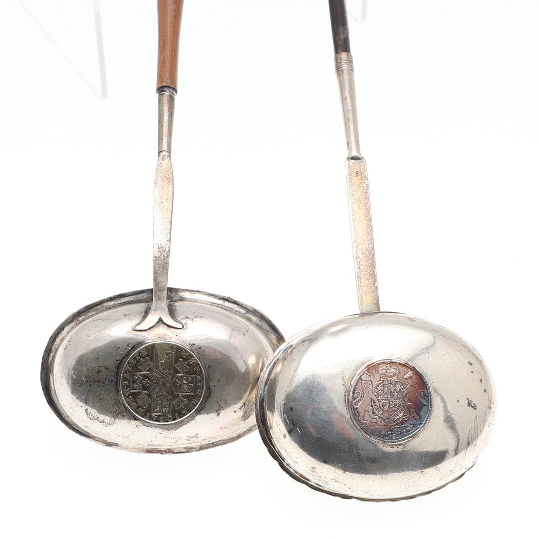 2459816. TWO SILVER COIN SET PUNCH LADLES.