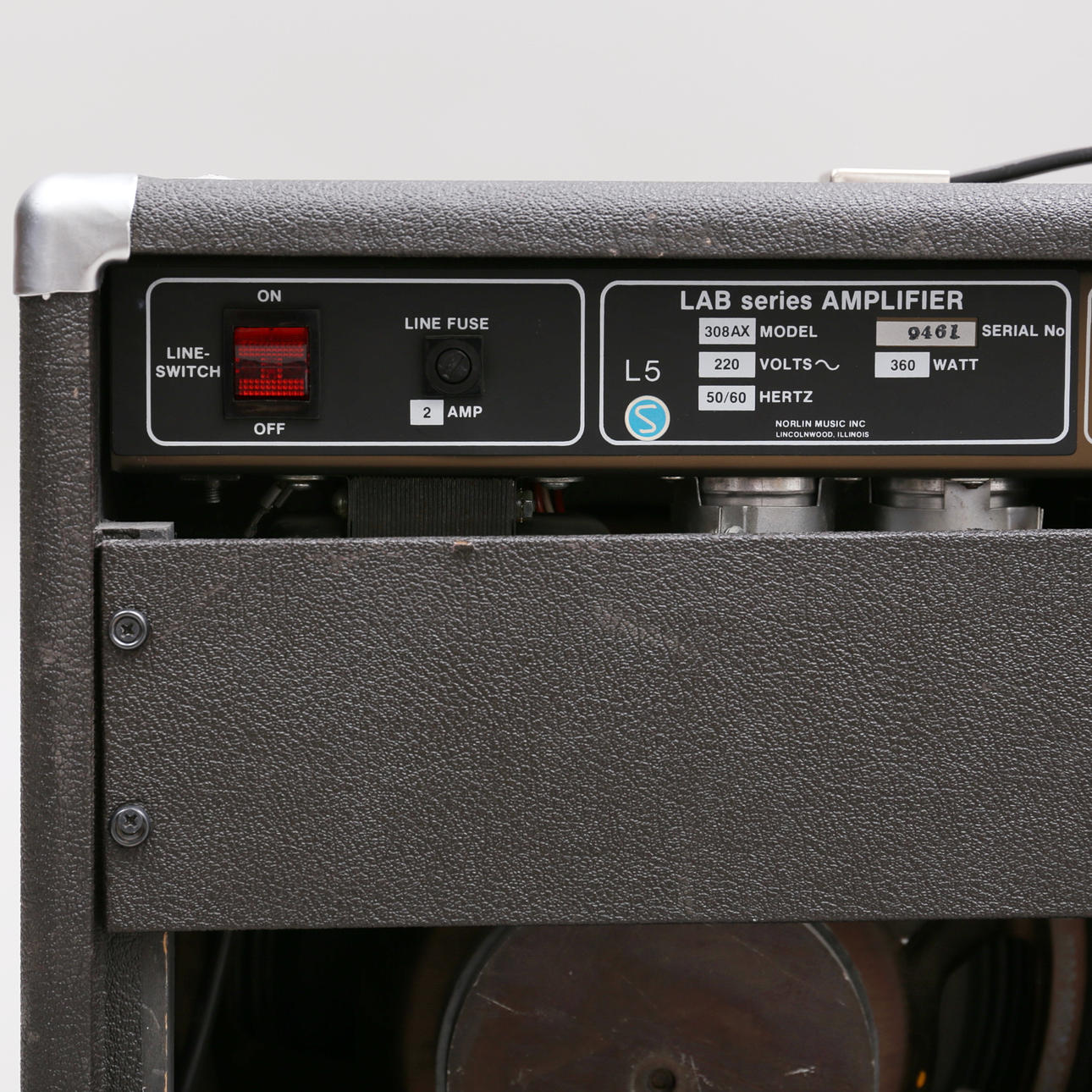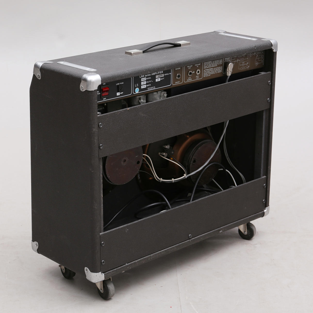 Amplifier Lab series L5 size 58x66x26 cm. Pedal Crimor, length 28 cm.