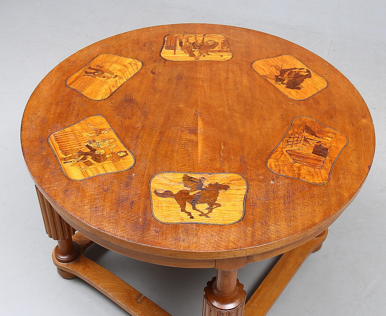 Story motif. Table top diameter 85 cm. Height 60 cm.
