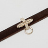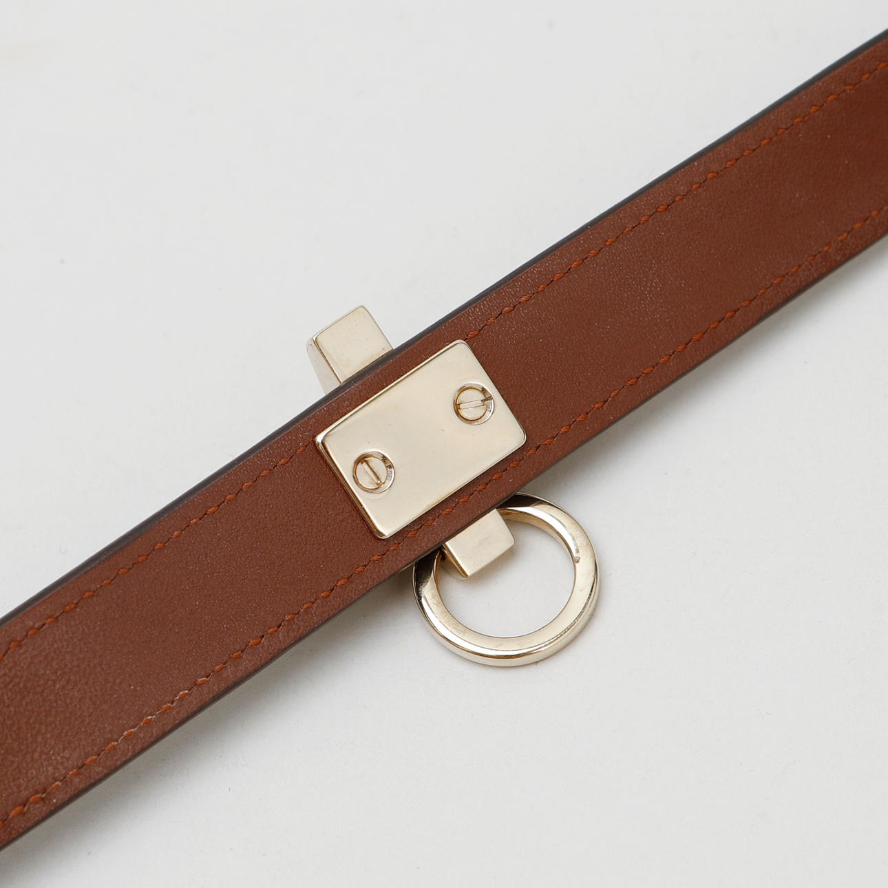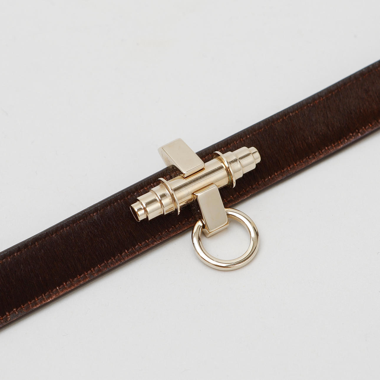 Brown leather with pony hair, buckle in yellow metal. Length 55 cm, width approx. 1.5 cm. Including dust bag.