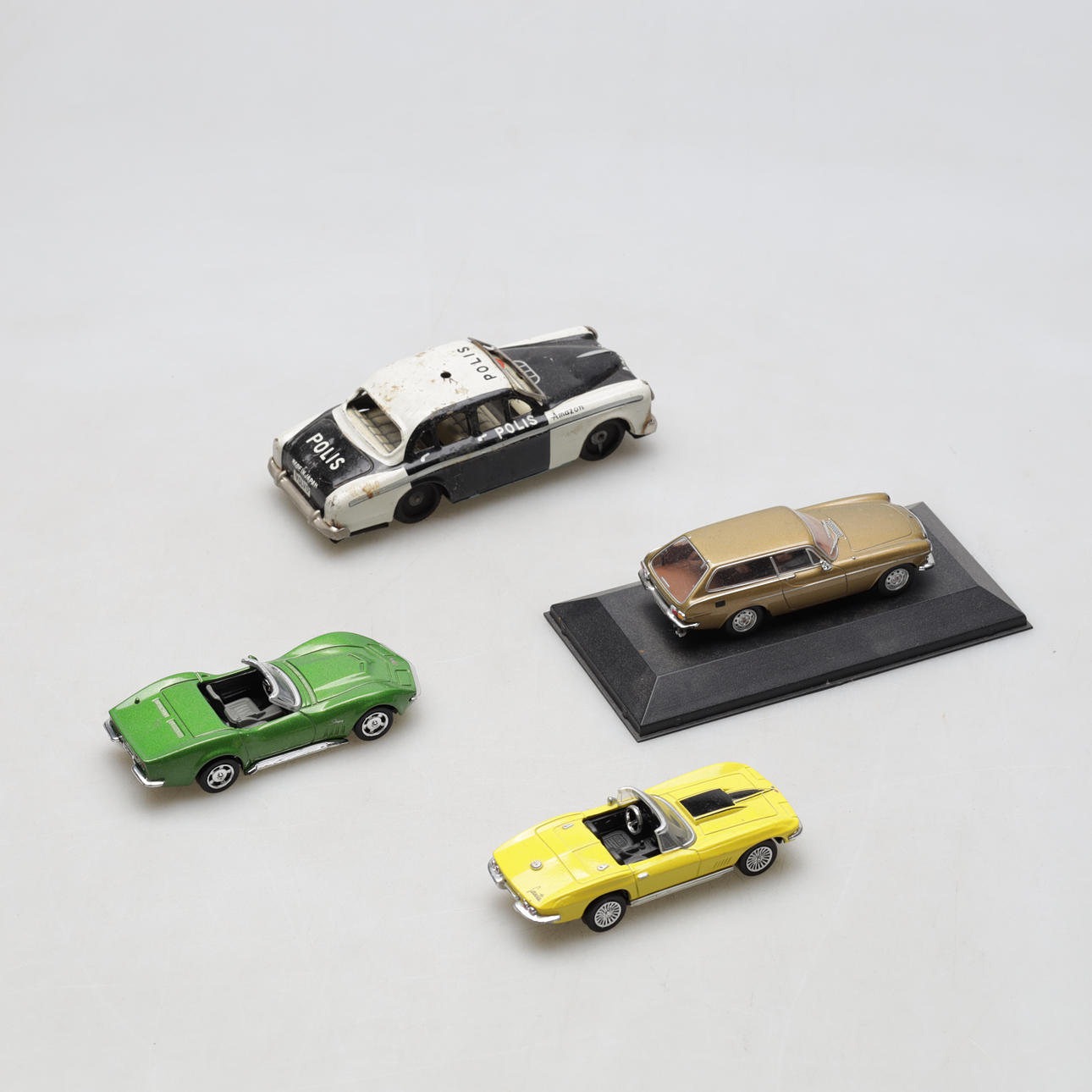 Corvette, Volvo and Chevrolet. Length approx. 10-14 cm.