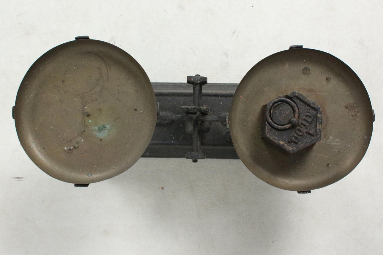 Scale, metal, incl. weight (1kg) dimensions approx.: 13x45x19cm.