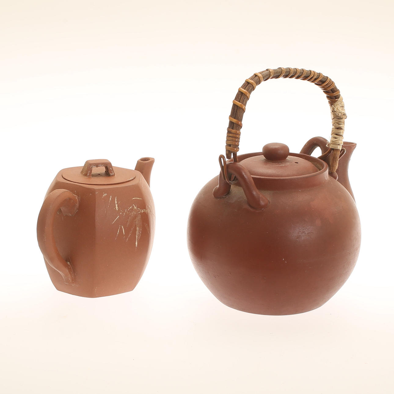 TEAPOTS, 2 pieces, earthenware, China 1900s.