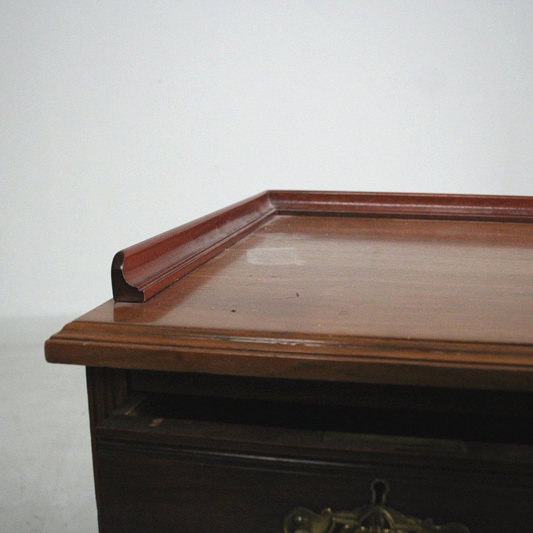 Material, dark wood, brass fittings, dimensions: H: 77 cm, W: 125 cm, D: 53 cm.