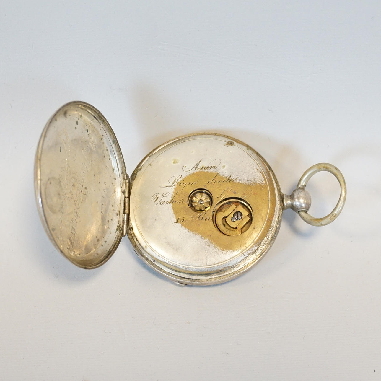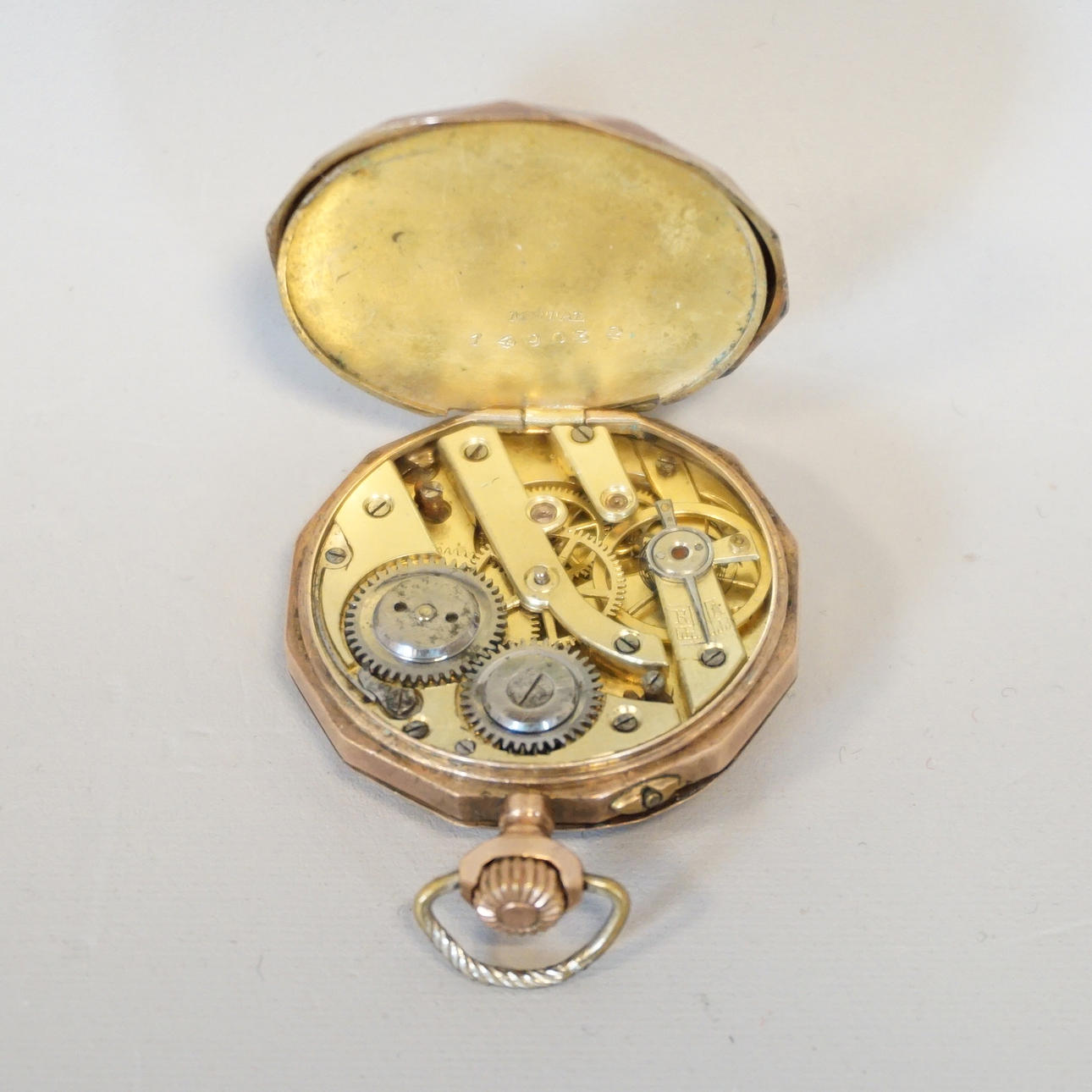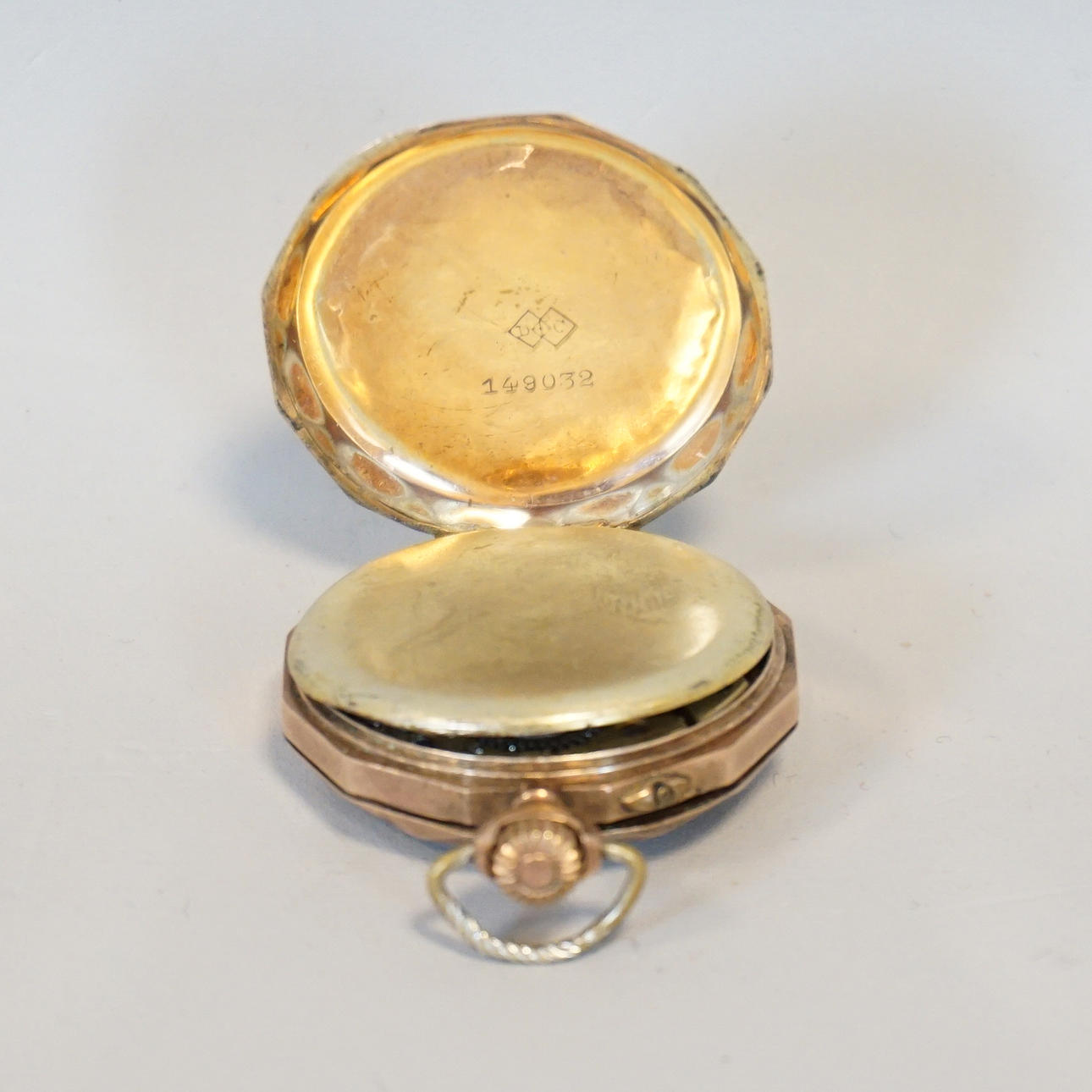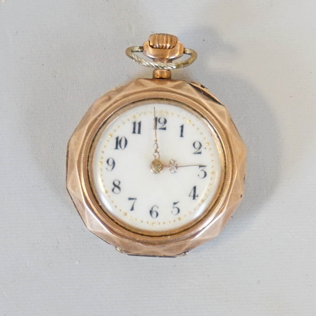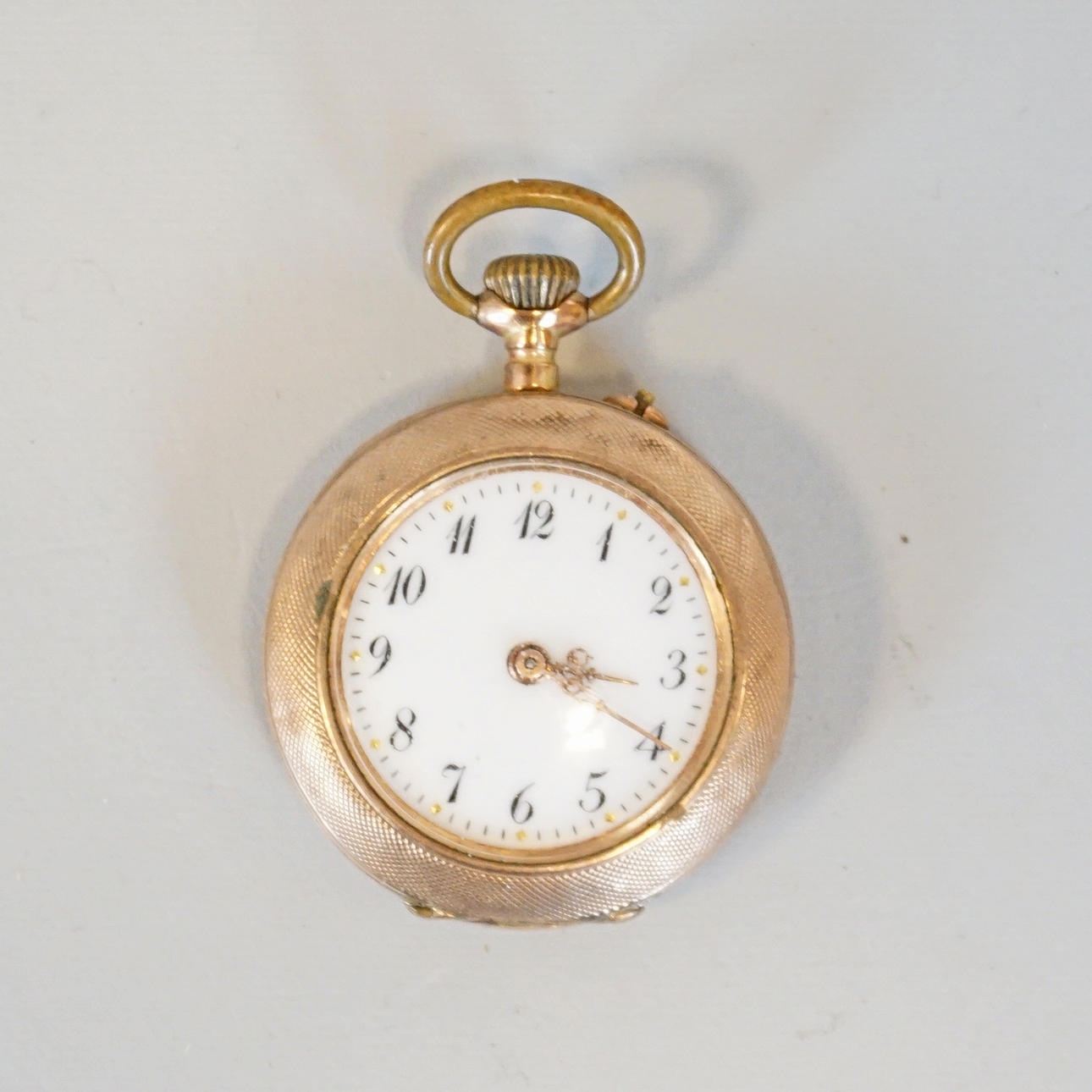 The pocket watch, anchor run starts on test, dial with cracks The ladies' pocket watch does not work. One has a crack on the glass.