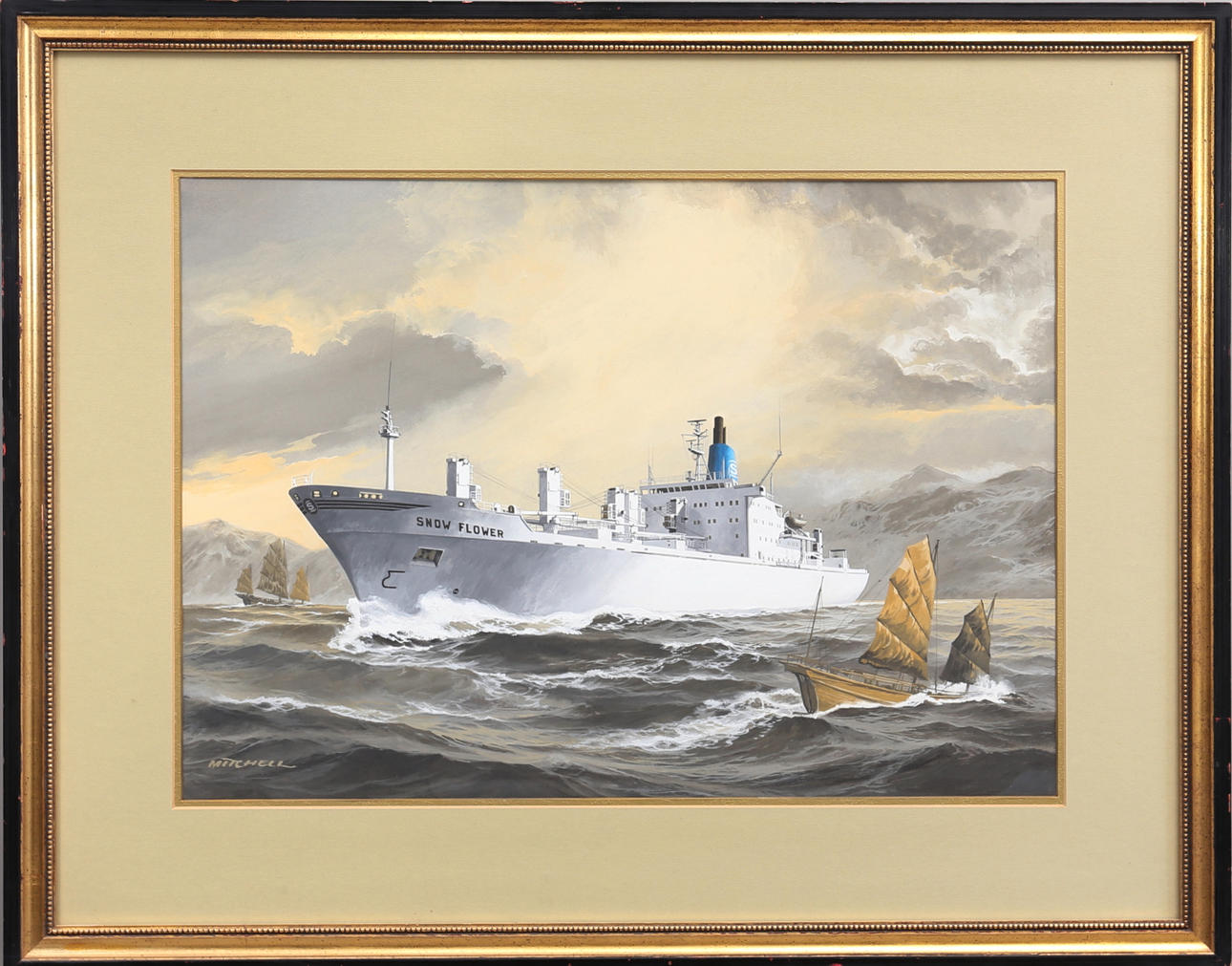 2471696. JAMES E MITCHELL. Watercolour, refrigerated engine ship M/S Snow Flower, for the Salén shipping company, 1972.