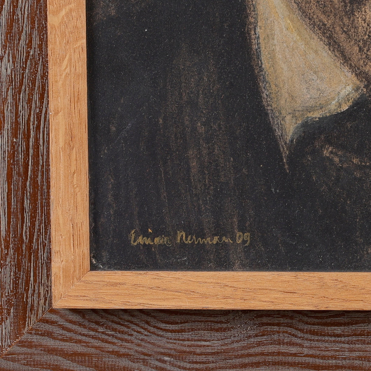EINAR NERMAN. Self-portrait, charcoal drawing, signed and dated -09.