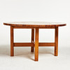 THE NORTH. For 4 people. Dimensions: Diameter 130 cm, height 70 cm. Board: Solid pine with bores and healthy pegs. Polyurethane varnish. Undercarriage: Solid square legs. Mountable. Weight 37 kg.Literature: IKEA Catalog 1975, pp. 105, 122.