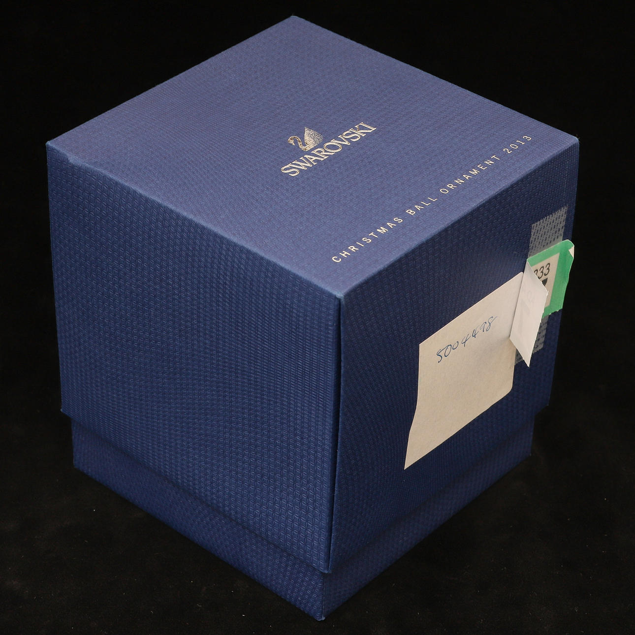 number 5004498, the glass ball with a tree in crystal moonlight inside, outside, the ball is decorated with sparkling crystals, the year 2013 engraved on the metal tag, with white satin ribbon for hanging, 9cm high, in original fitted box.
