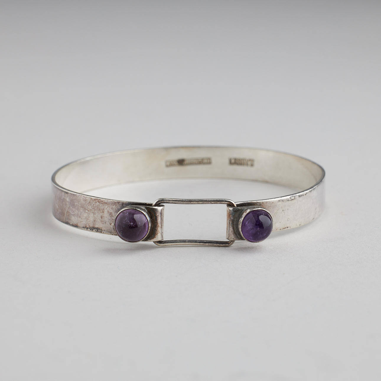 BROOCH AND BRACELET, silver, amethyst.