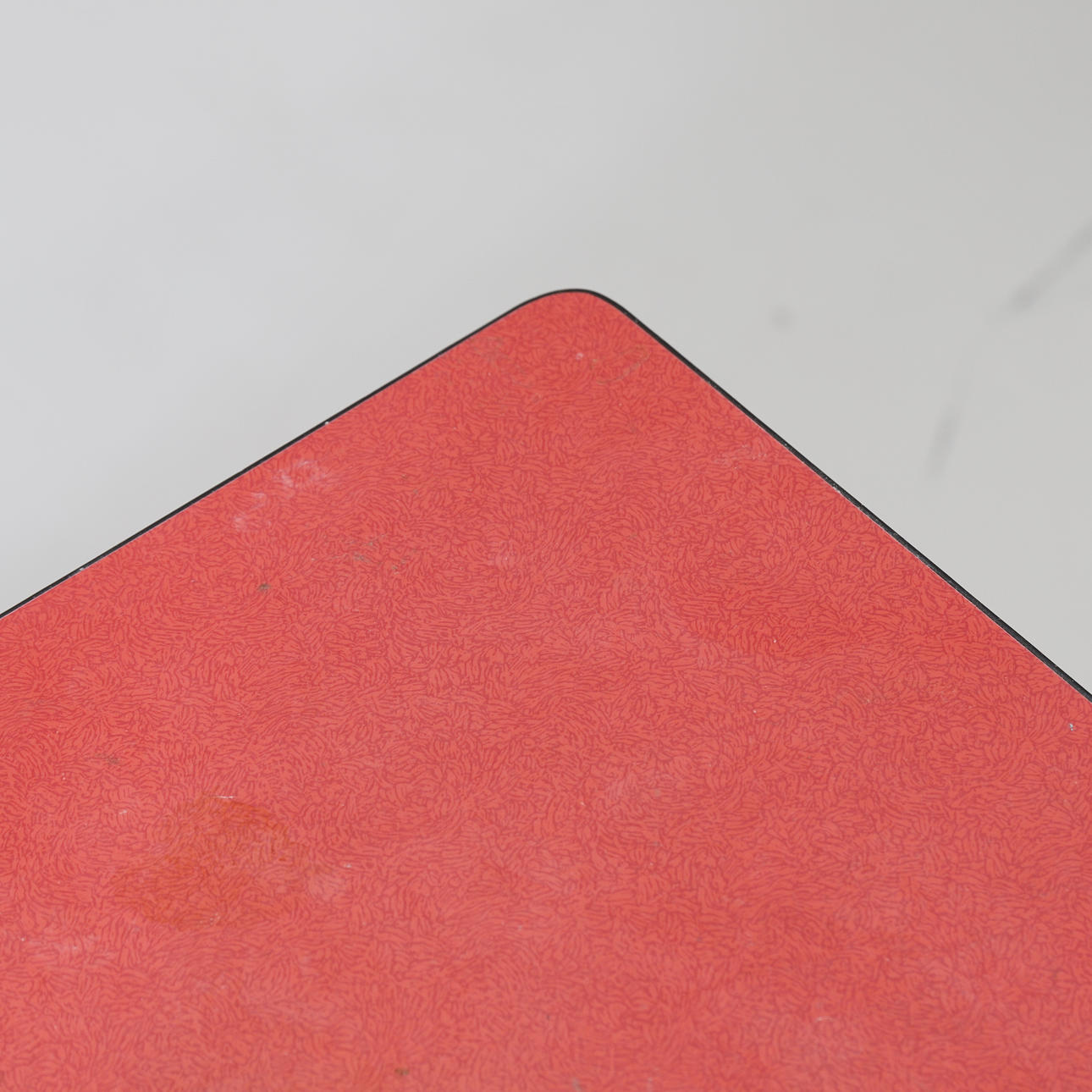 Normal wear and tear. Scratches, stains and blows. Laminate loose in corners. Later additions.