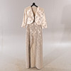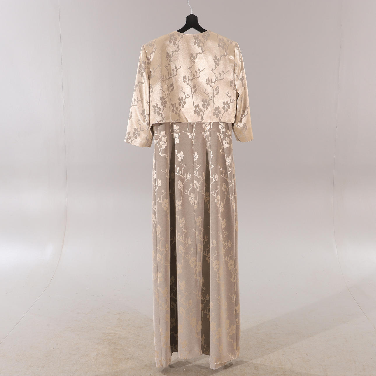 Sleeveless lined dress, length without shoulder strap 130 cm, 17 cm zipper at waist 17 cm Bust measurement approx. 82, waist measurement approx. 74 cm Bolero, back measurement 36 cm.