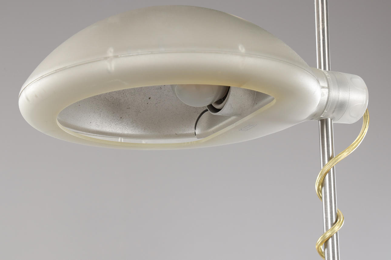 Metal frame, adjustable light point, height approx. 185 cm.