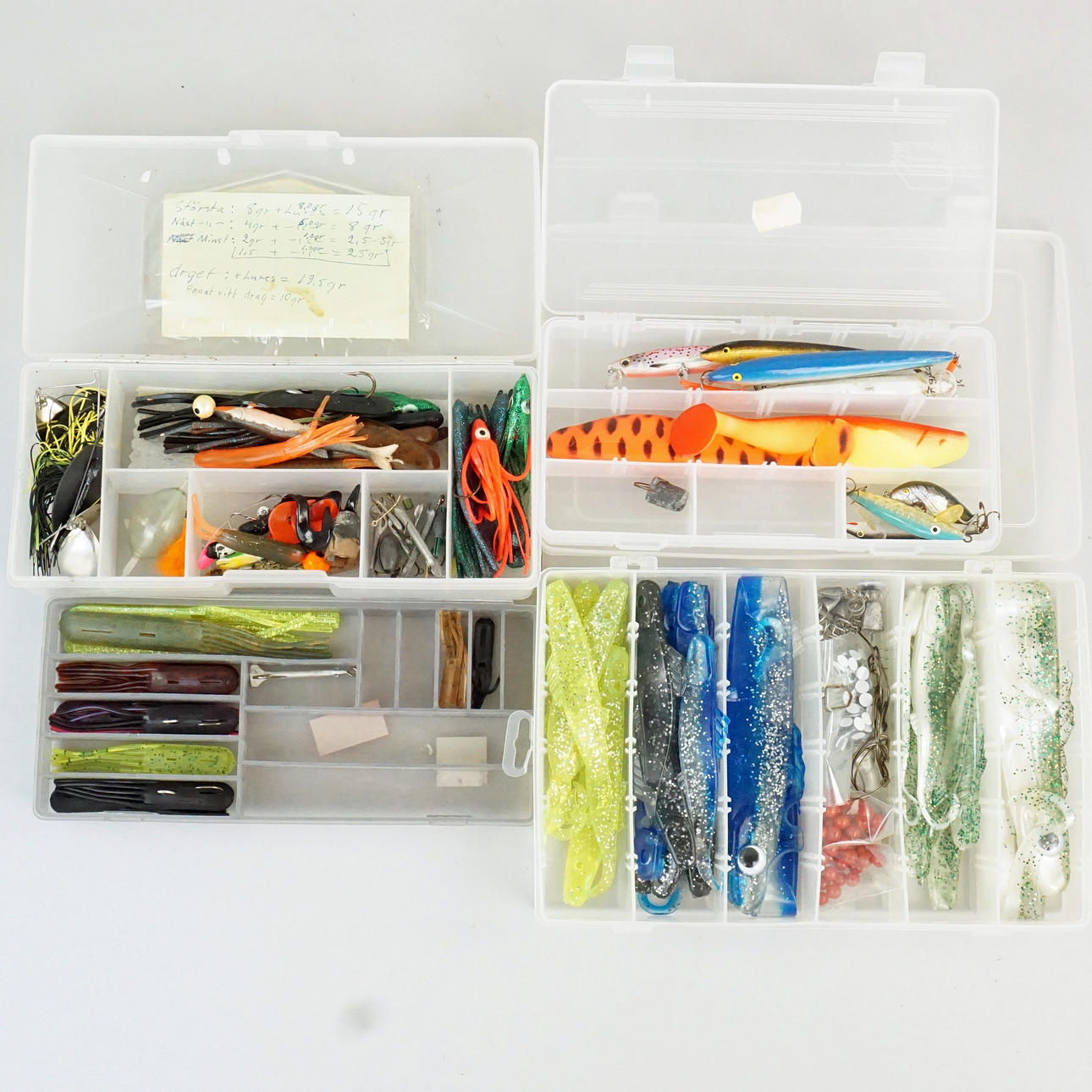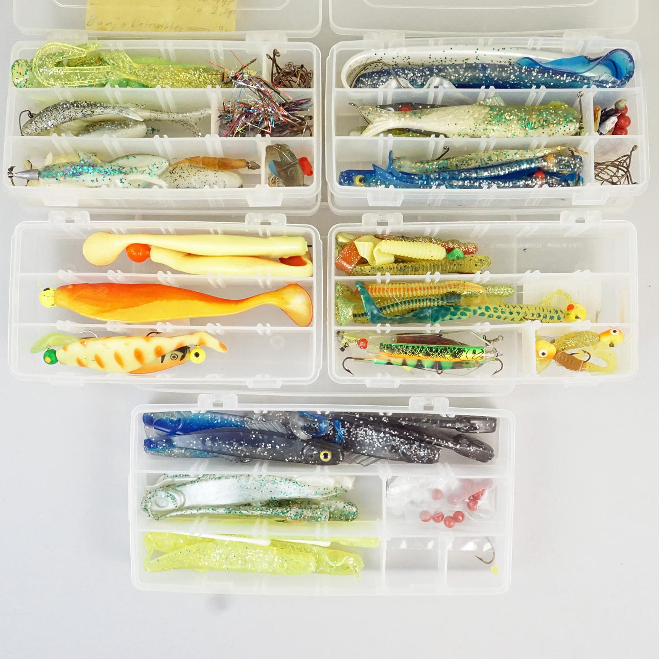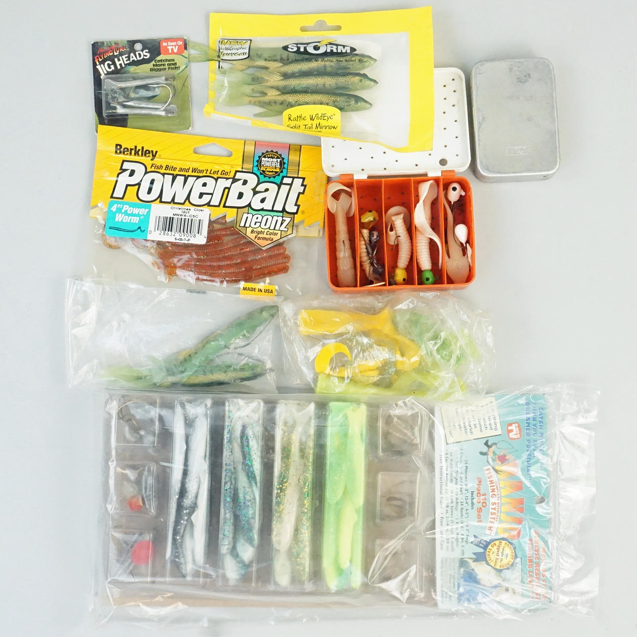 Large A Collection of fishing lures, Rubber baits in various sizes and models (PowerBait, Flying Lures).
