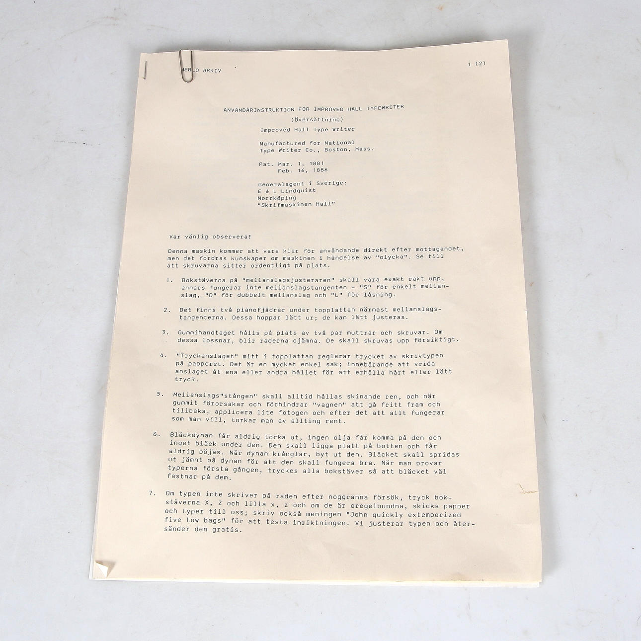 TYPEWRITER, "Improved hall typewriter", Type Writer co. Boston Mass. 1886.