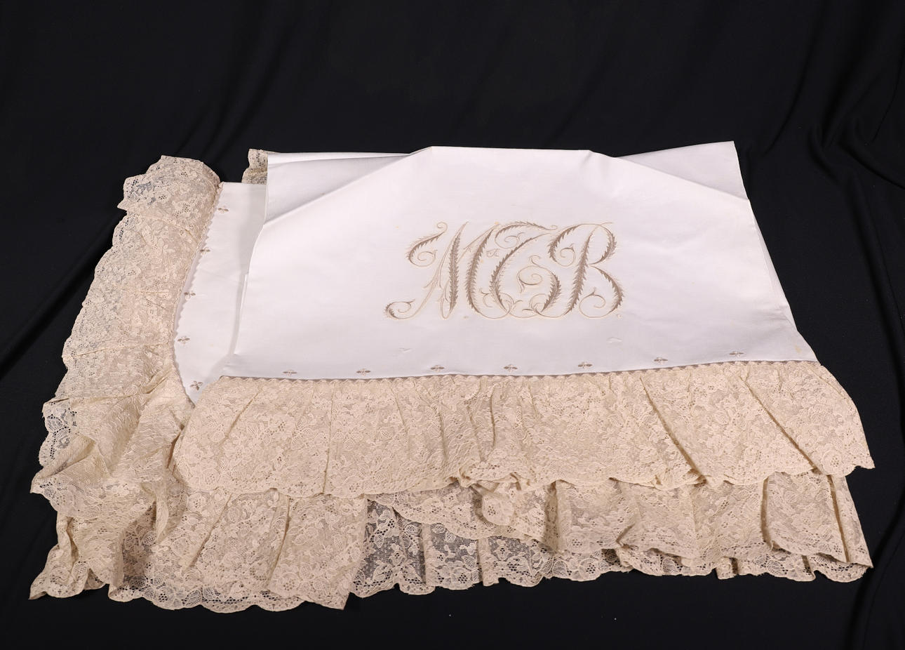 beige lace with matching initials.