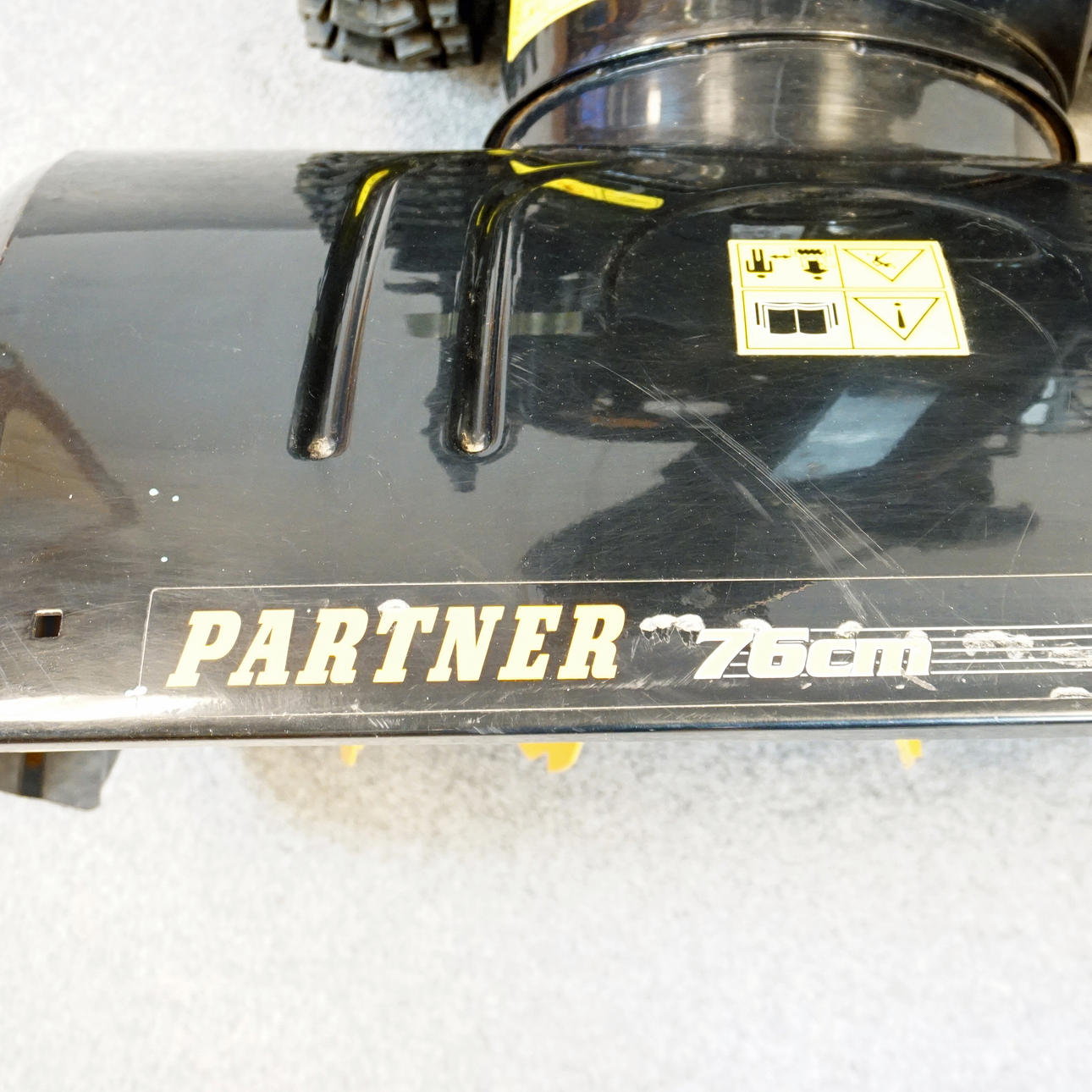 Snow blower, Electric start + Pull start, Halogen lamp, Working width 76 cm, KW/RPM 8.2, 3600. Length 138 cm, Width 77 cm, Height 109 cm.