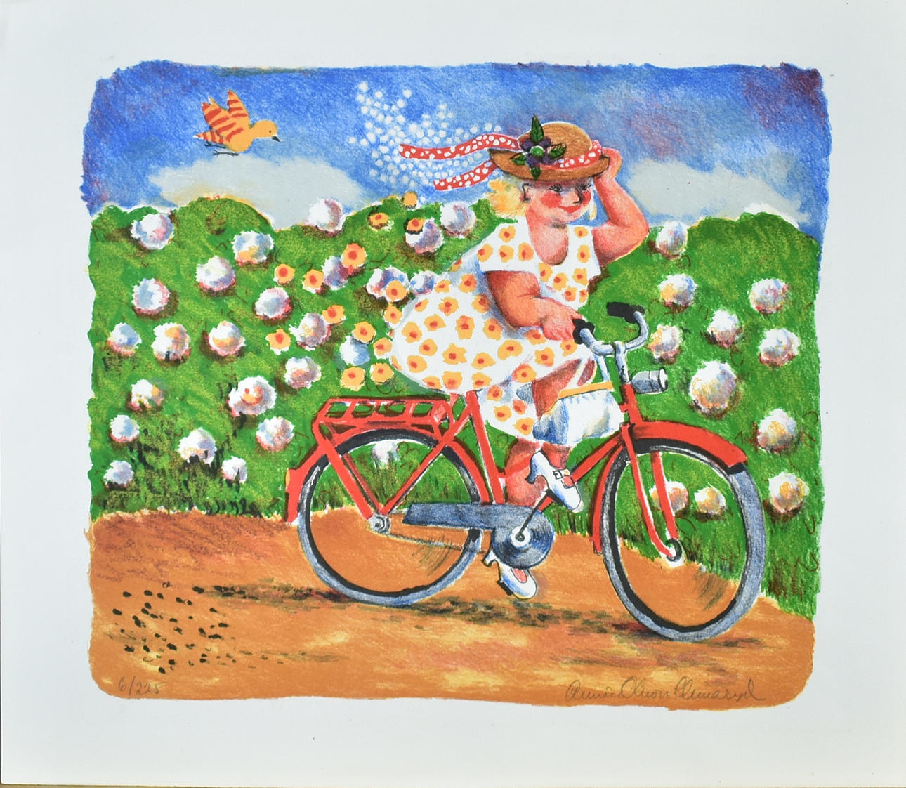Cycling woman approx. 38 x 43 cm.