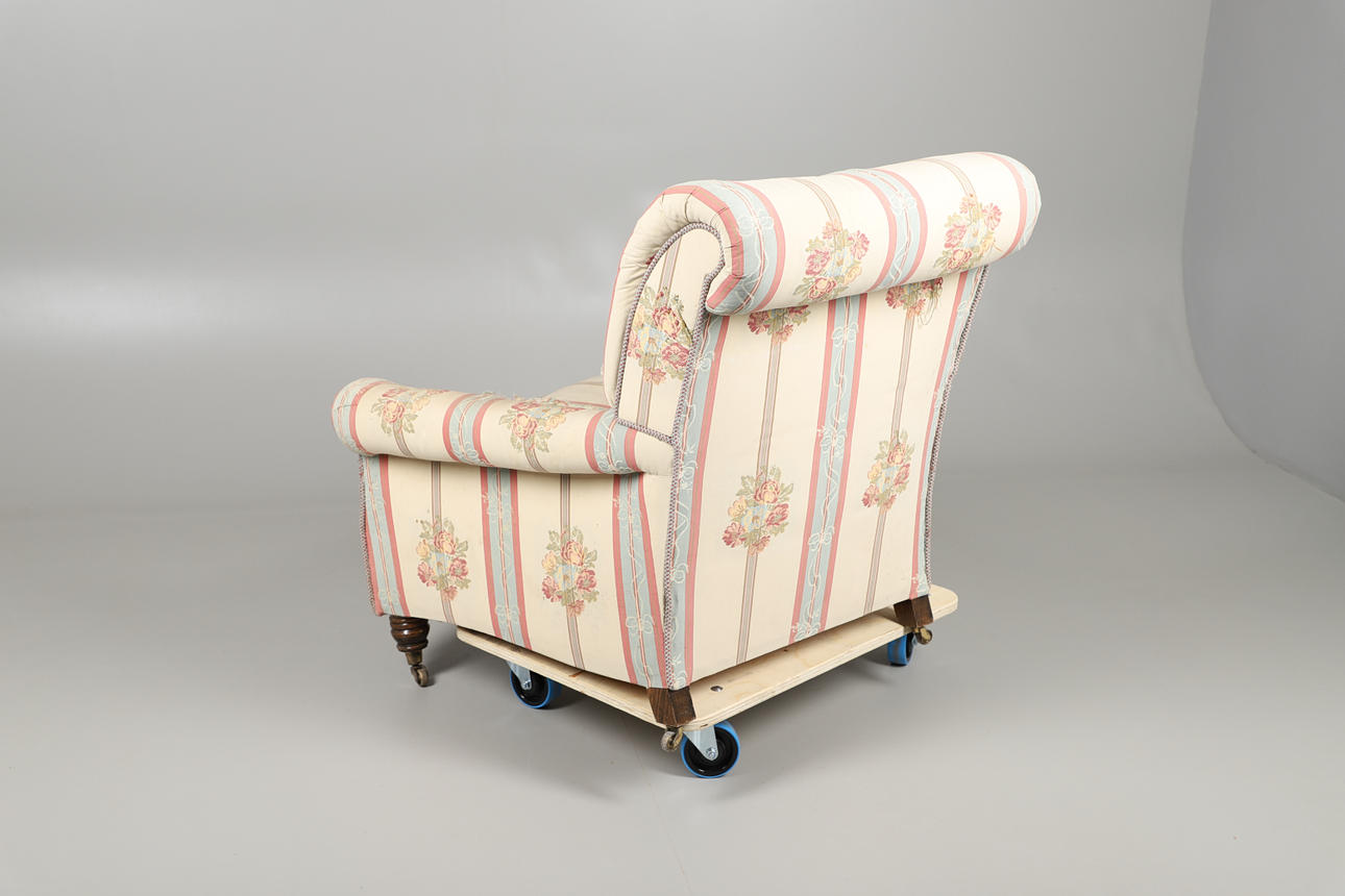 A Peter Dudgeon Floral pattern armchair on brass castors, Seat Height 45cm, Total height 90cm (Approx.)