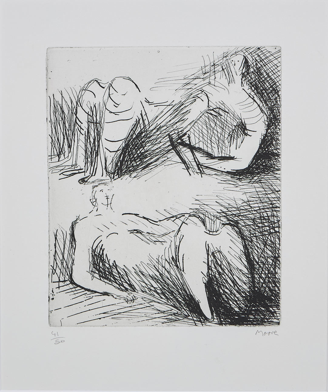 HENRY MOORE. "Two reclining Figures" (1971/72), signed, etching, 41/50.