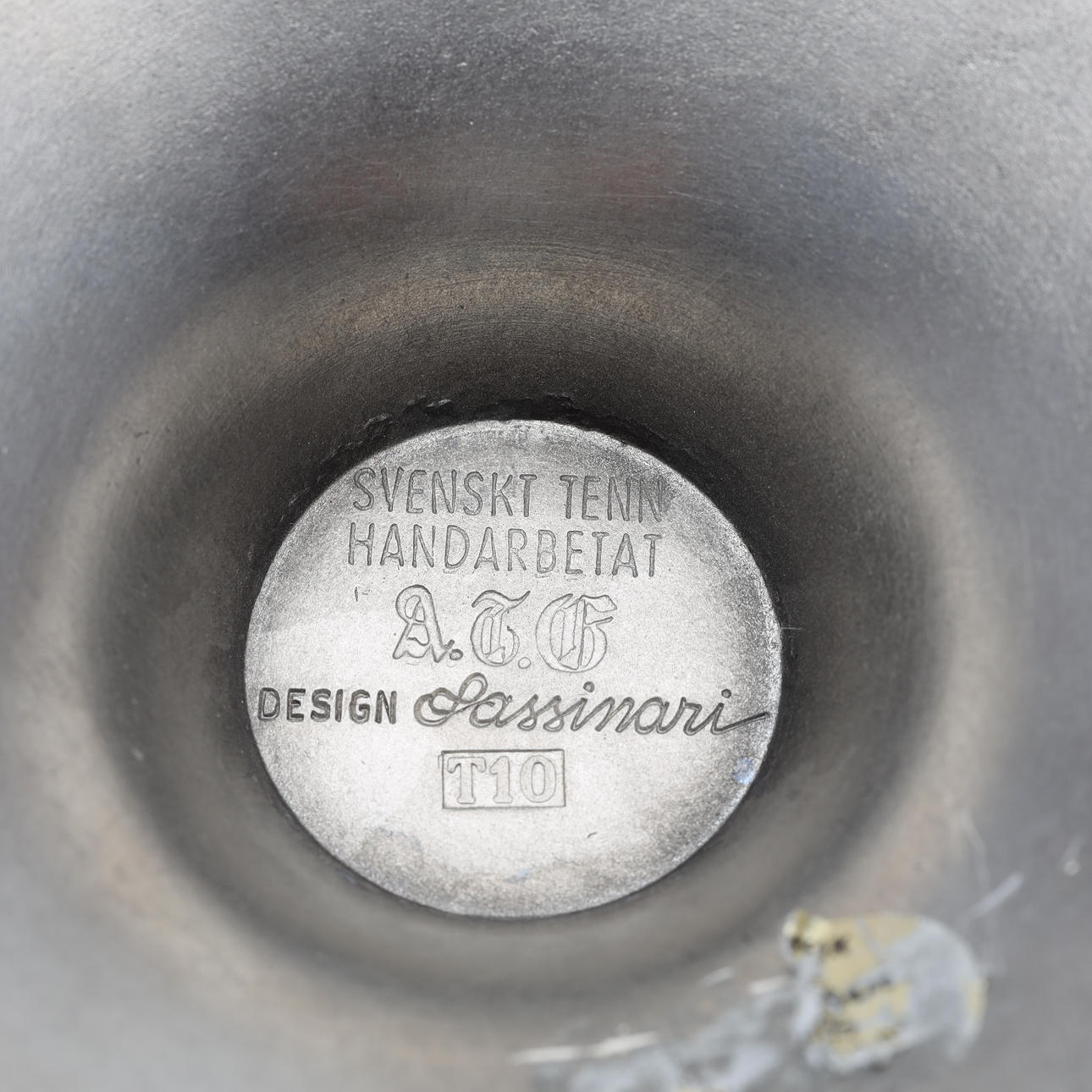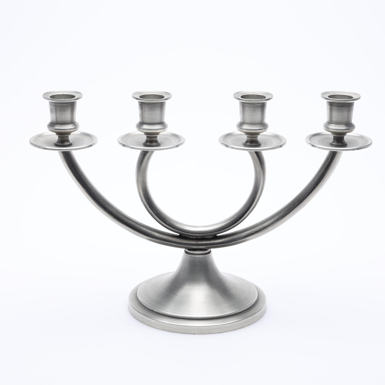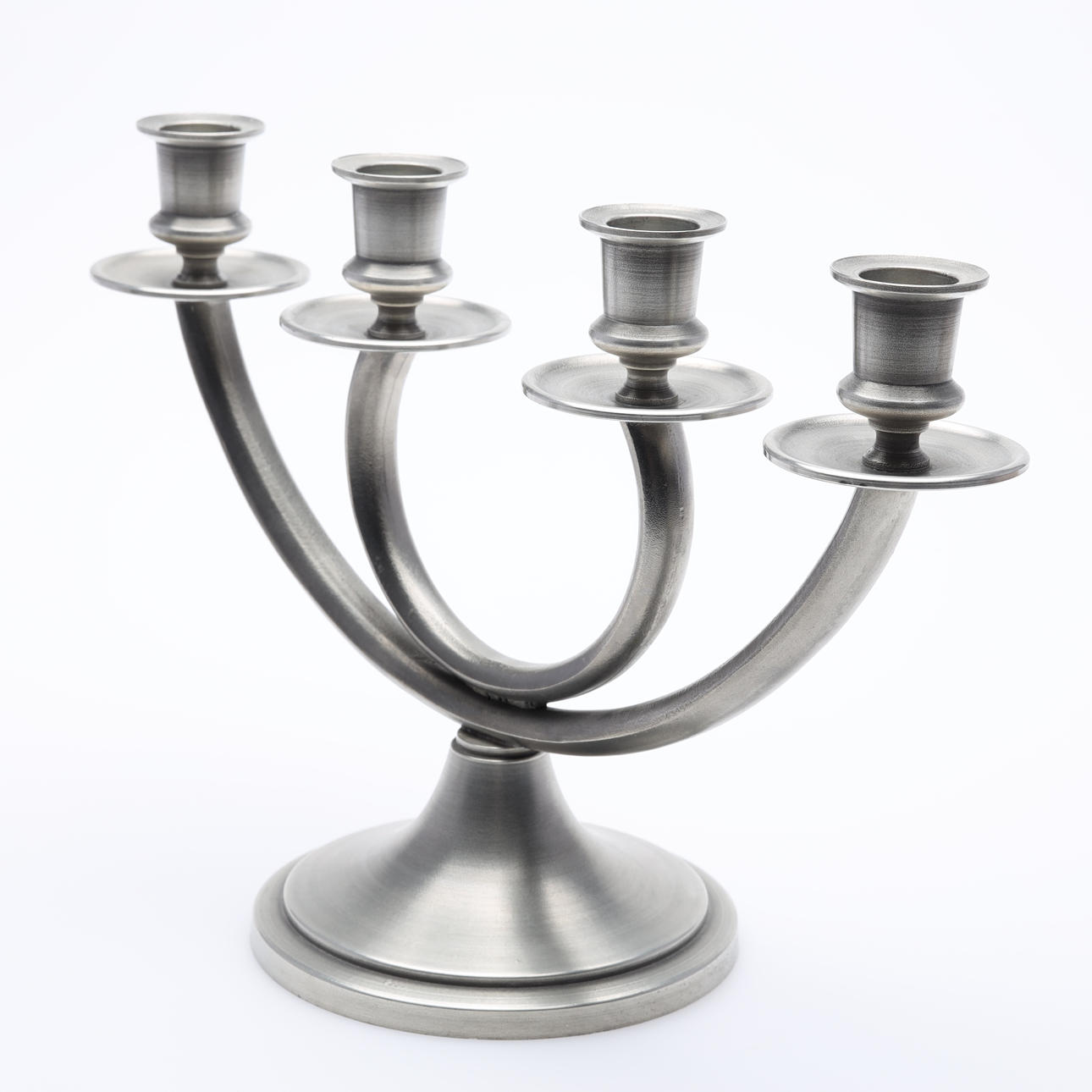 Four-armed candelabra, Swedish Pewter handicraft, designer Aldo Tassinari.