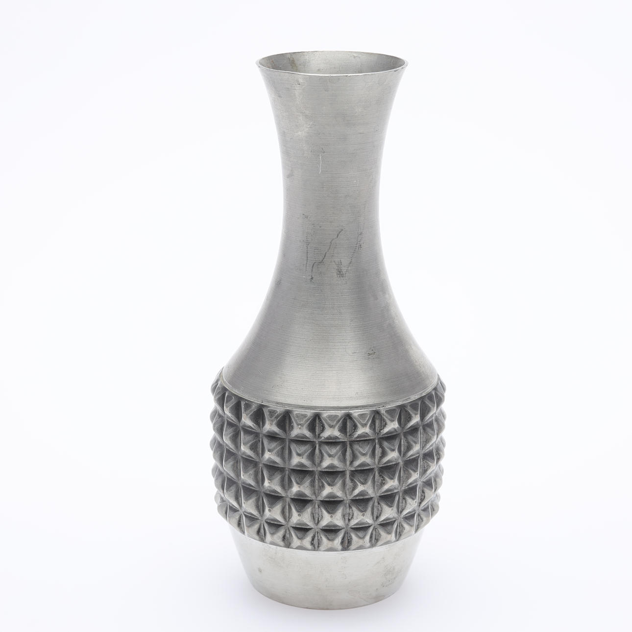 2498780. PEWTER OBJECTS, vase, candelabra, 2 parts.