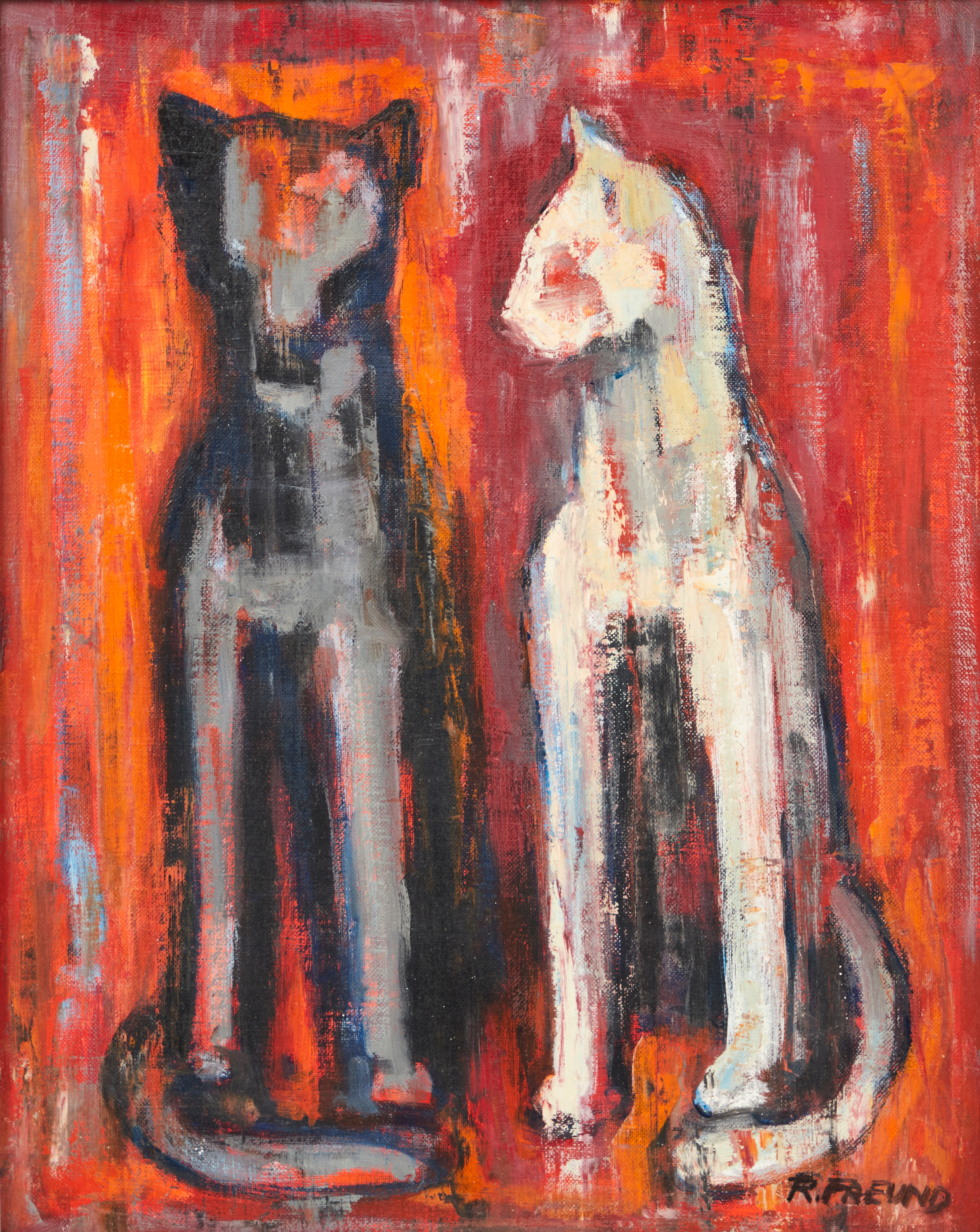2500599. ROBERT FREUND. Painting, Two Cats.