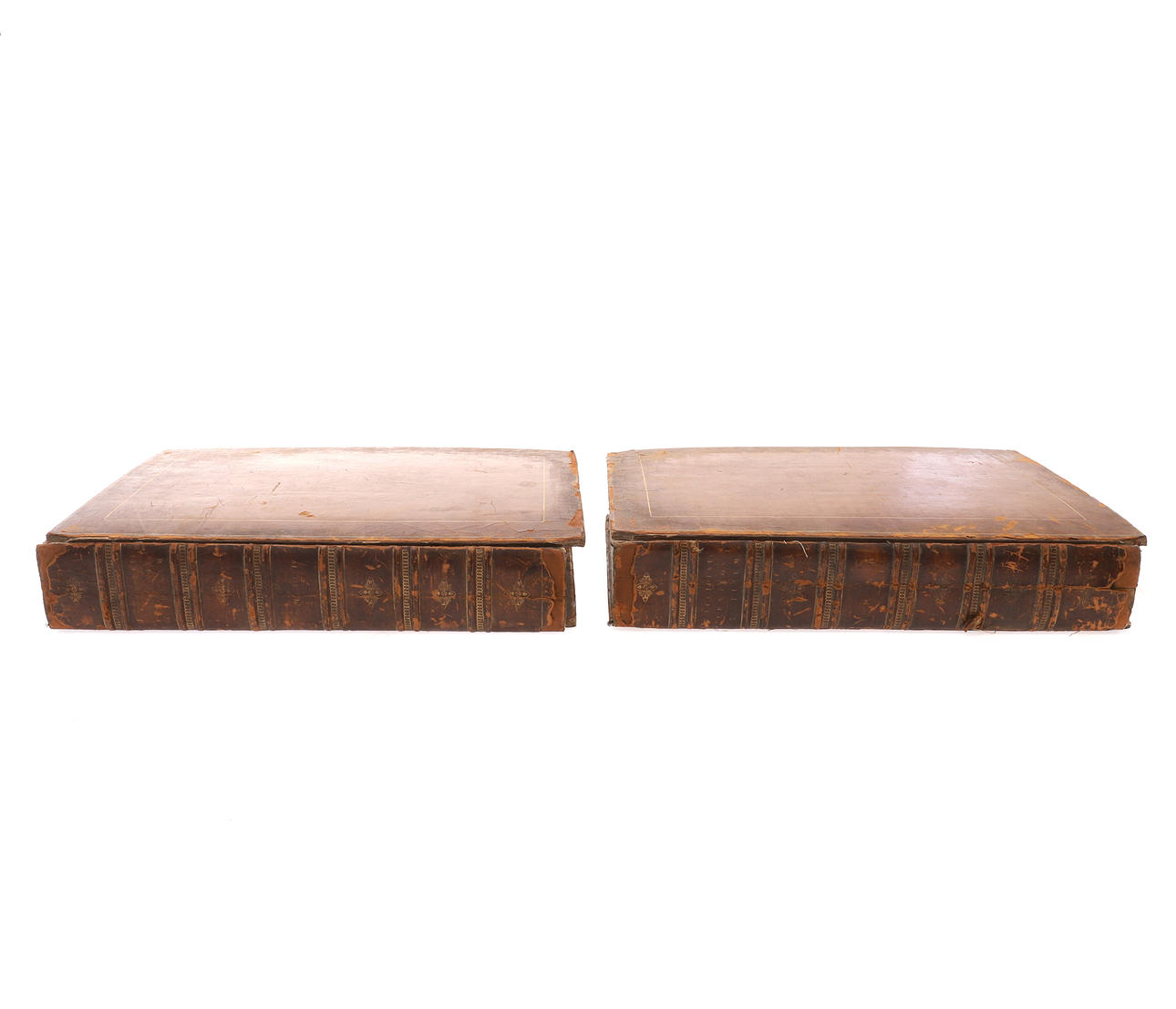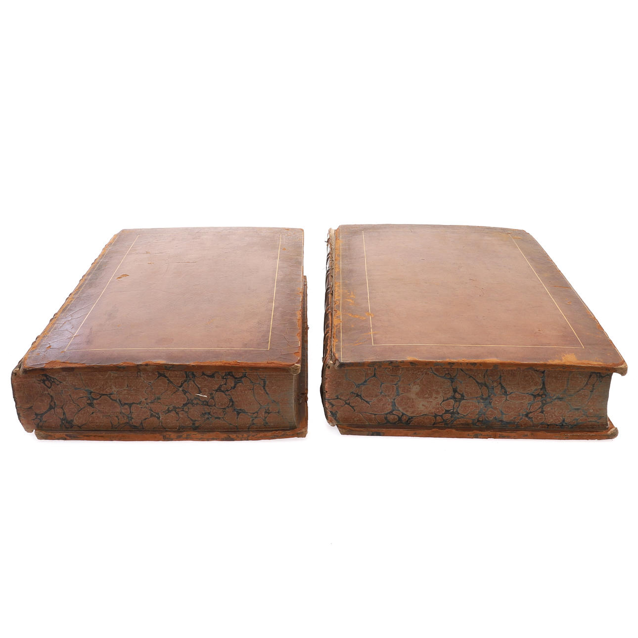 scattered staining and darkening to pages, creasing, damage to some end papers and with one lacking, bindings, heavily worn and marked with covers detached.