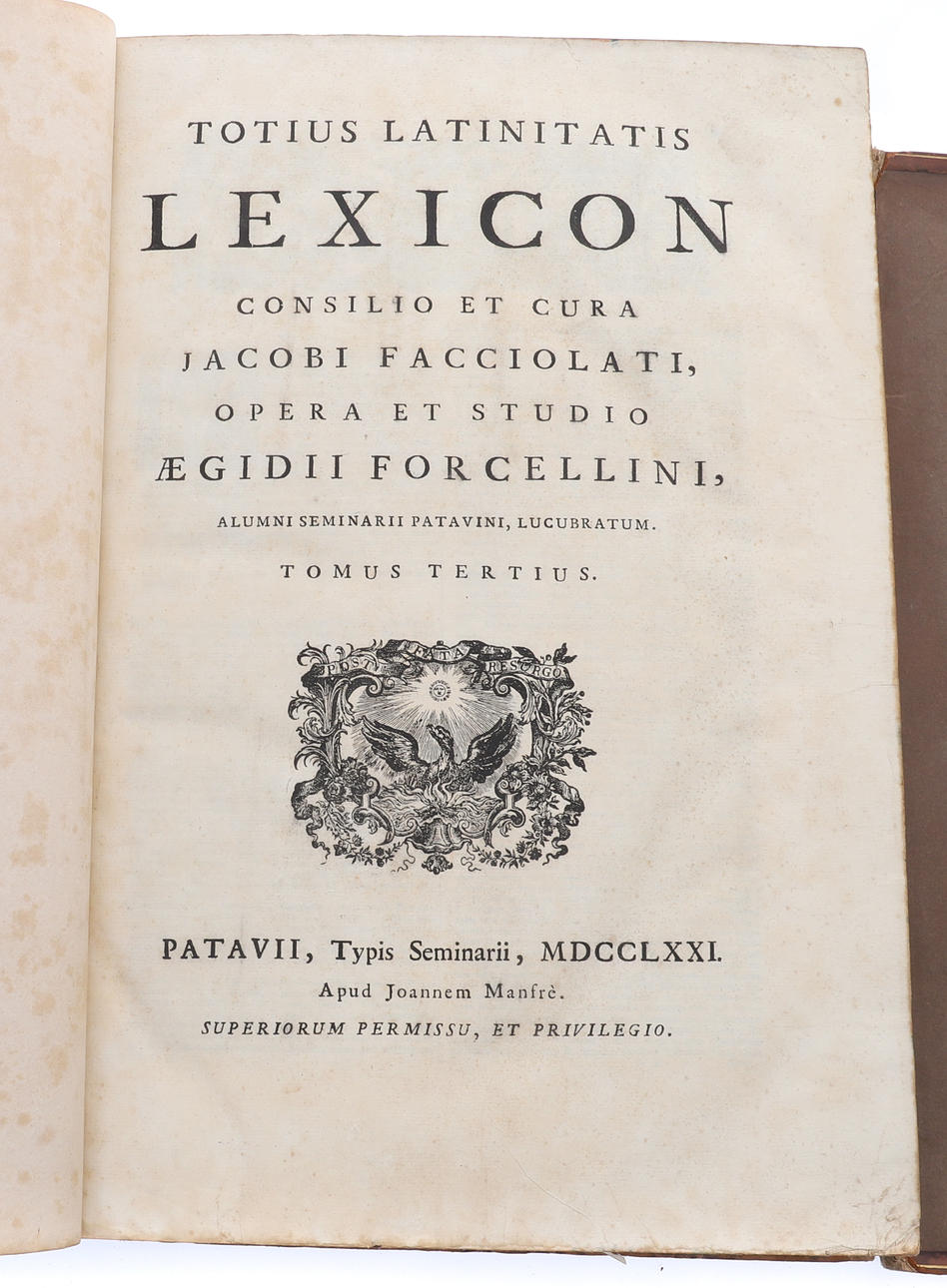 2504670. FORCELLINI (EGIDIO). TOTIUS LATINITATIS LEXICON.