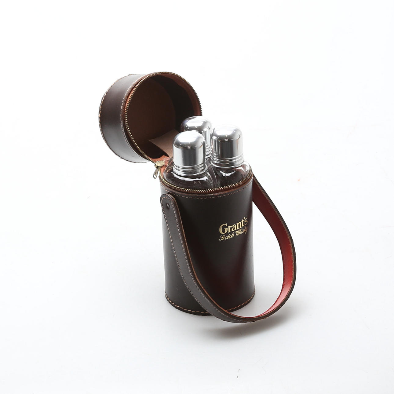 WHISKEY CONTAINER, with GLASS BOTTLES, 3 pcs. 1900s.