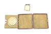 The Mappin & Webb clock circa 1930s, fitted an eight day movement numbered 46072, the 5.5cm dial with gilt painted Arabic numerals, housed in a folding brown leather case.