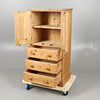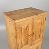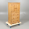 A Tall pine cupboard, with a single shelf two door cupboard over three drawers. Height 118cm x Length 61cm x Depth 40cm.
