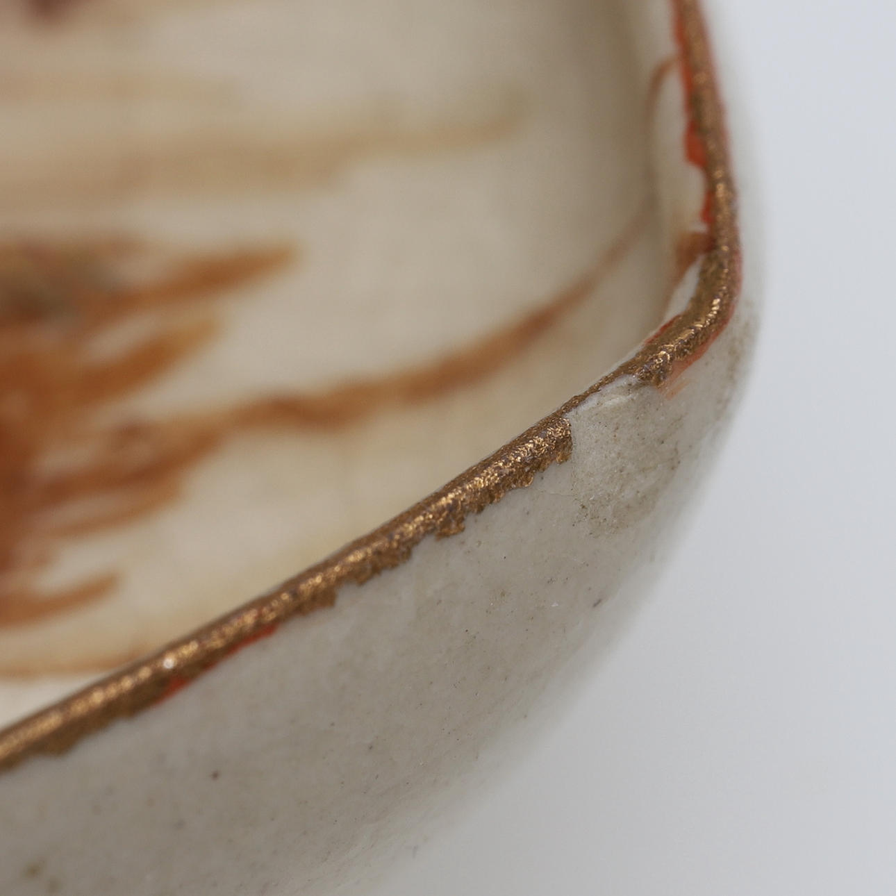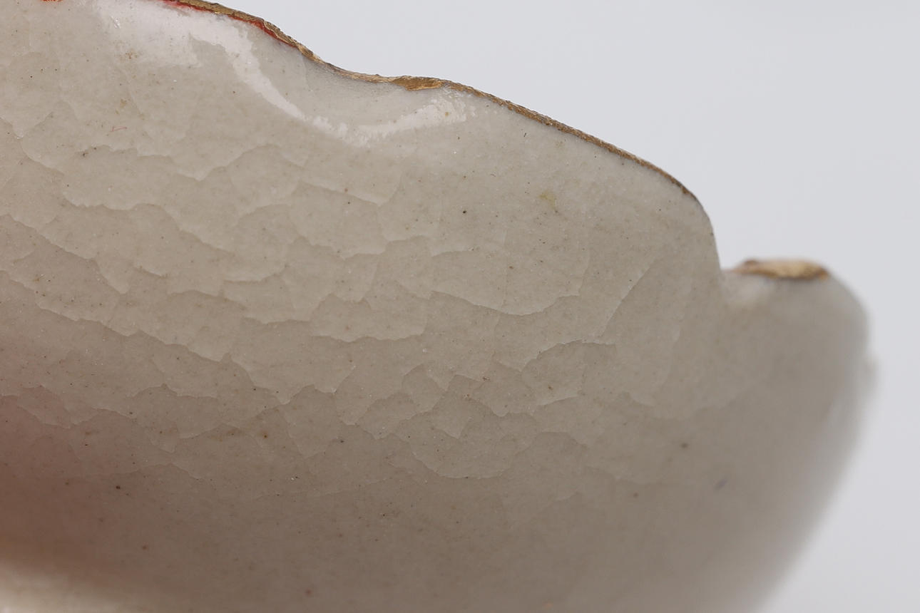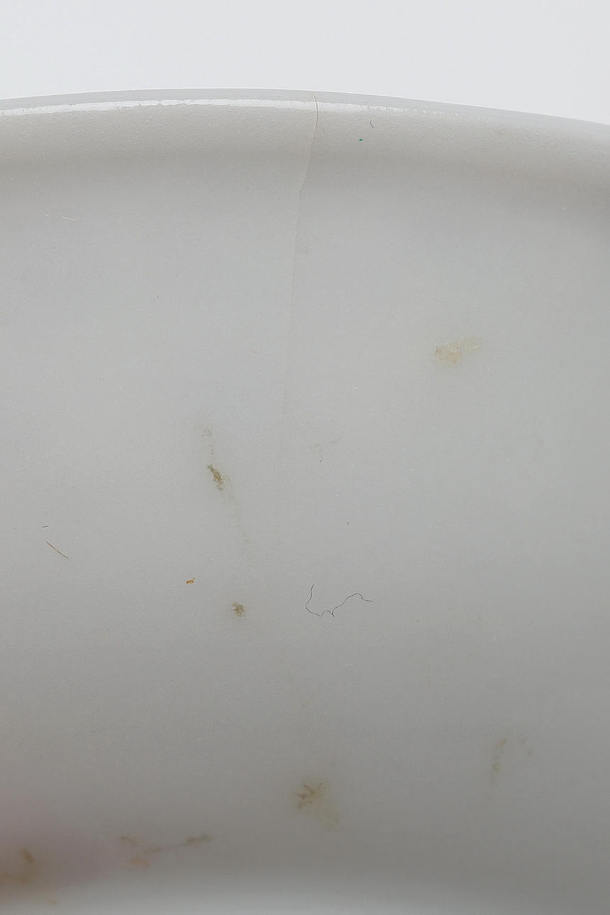 Pink bowl with thin crack. Minor Chips and cracks are present.