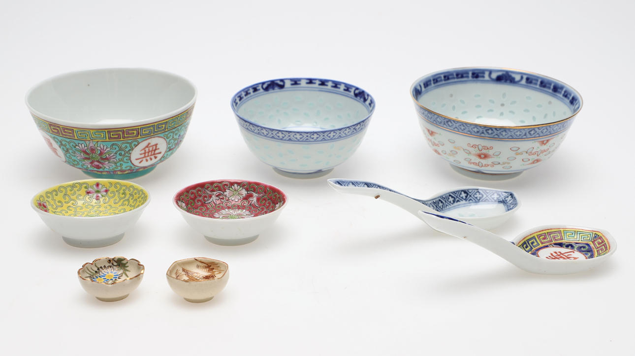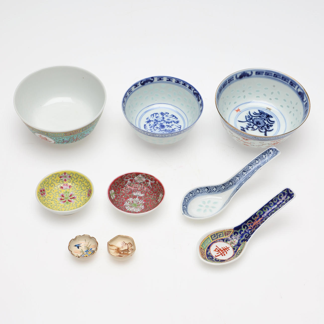 Bowls, approx. 3-12 cm in diameter. Soup spoons, approx. 13.5-14 cm long.