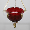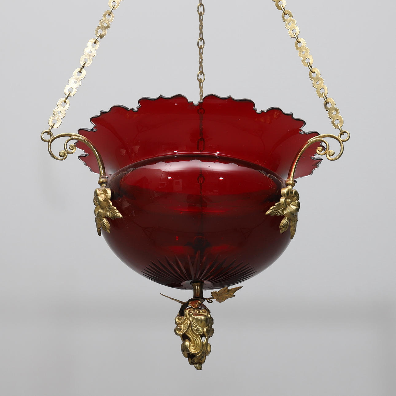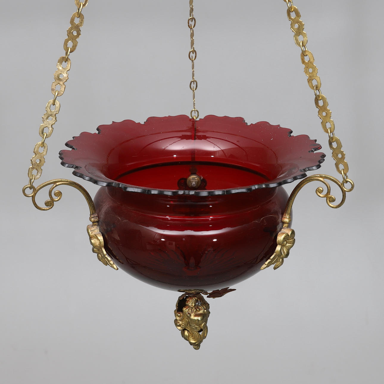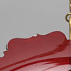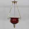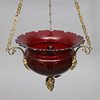 Red colored bowl with ground decoration. Details in brass. Diameter approx. 29, height 52 cm.